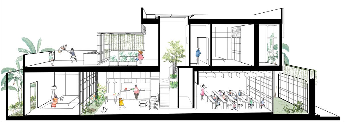 Excerpt: J house, for a single teacher, designed by CTA | Creative Architects, has an interesting and comfortable living space, with trees, natural light, and an airy atmosphere, unlike a typical townhouse. The design incorporates two natural ventilation shafts, vertical and horizontal, which ensure all spaces in the townhouse are naturally ventilated.