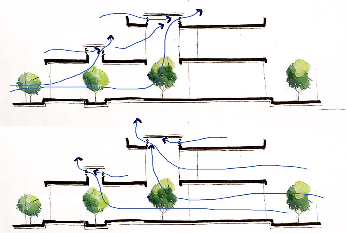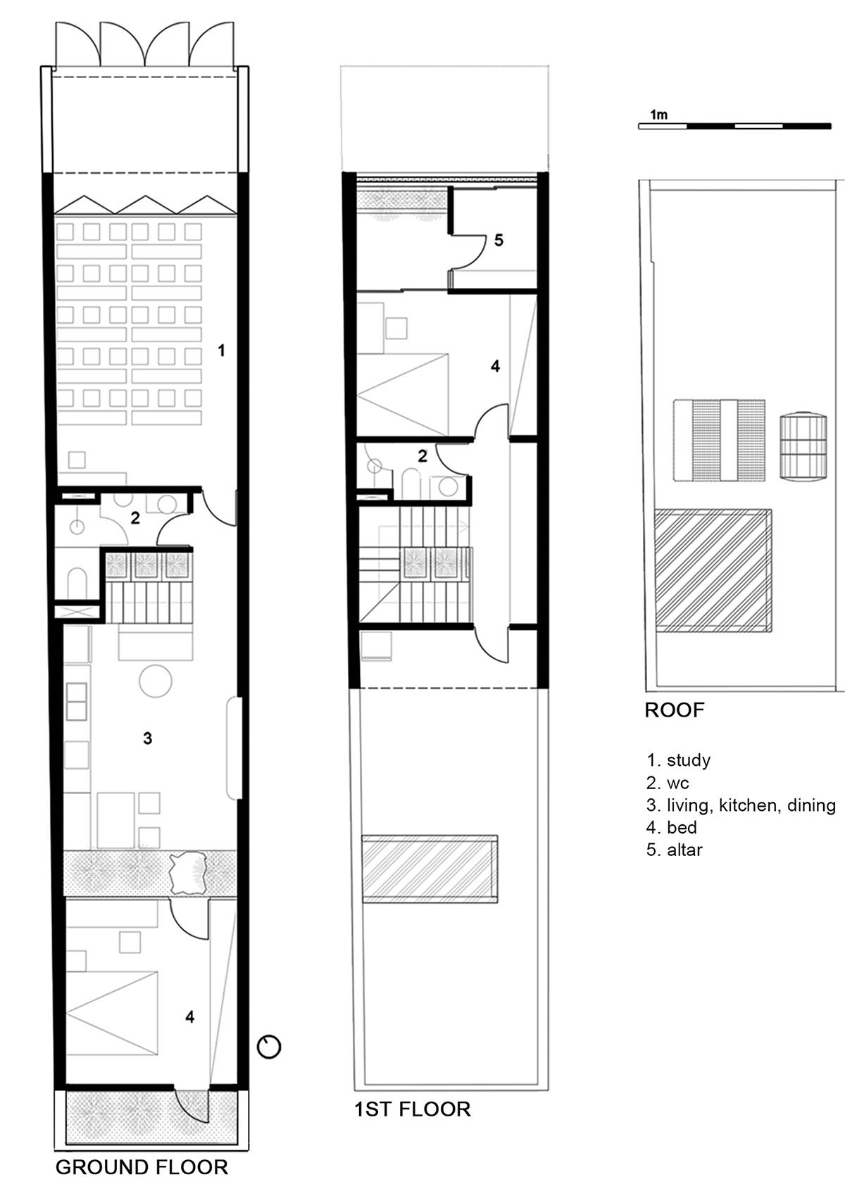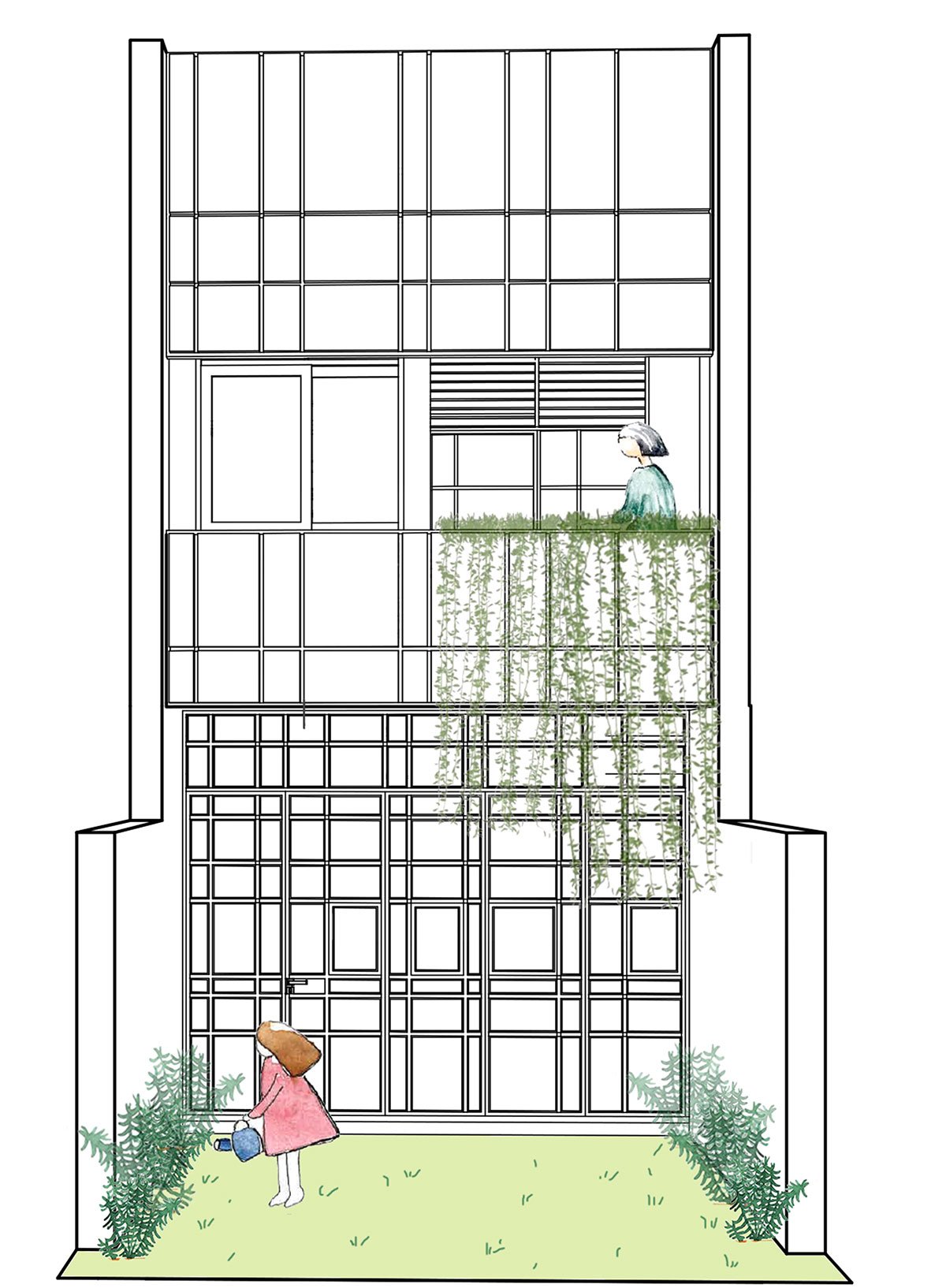 After analyzing the typical defects of townhouses, the team put the criteria of green space, natural light, natural ventilation, and noise prevention into the top priority list in the design process. Through the process of working, the team agreed on a solution to layout functions to help limit the disadvantages when designing townhouses: