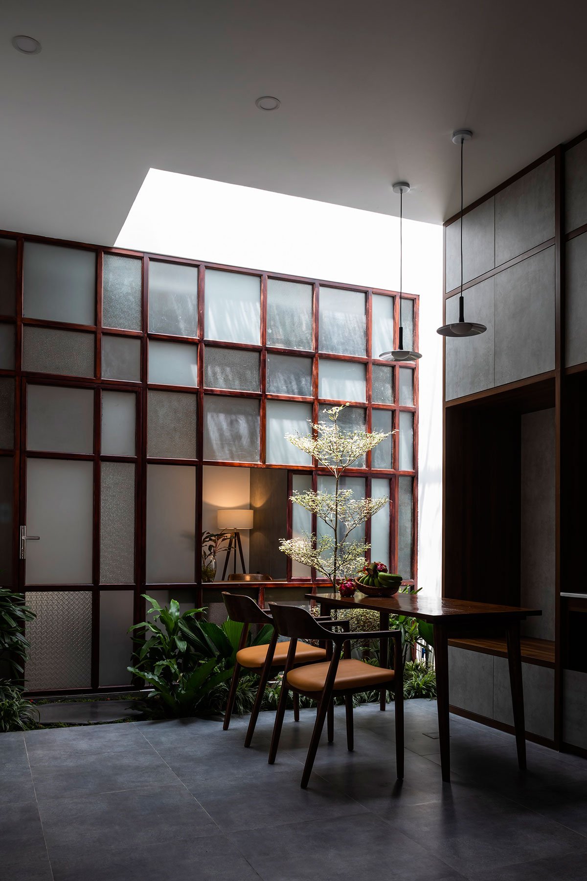 [Text as submitted by architect] The owner of J house is a single teacher, after a period of accumulation, she bought a small piece of townhouse land with dimensions of 4 x 24m. The teacher shared that she likes to spend a lot of time at home and she has a habit of taking care of the plants in the garden and wants the house to be bright, airy and close to nature. However, the townhouse layout is narrow in width, in the case of J house is 4×24 m, and the normal construction method stretches, dividing the room will cause a lack of light, poor ventilation, and noise resistance, as well as insufficient space. Garden space for the homeowner’s hobby.