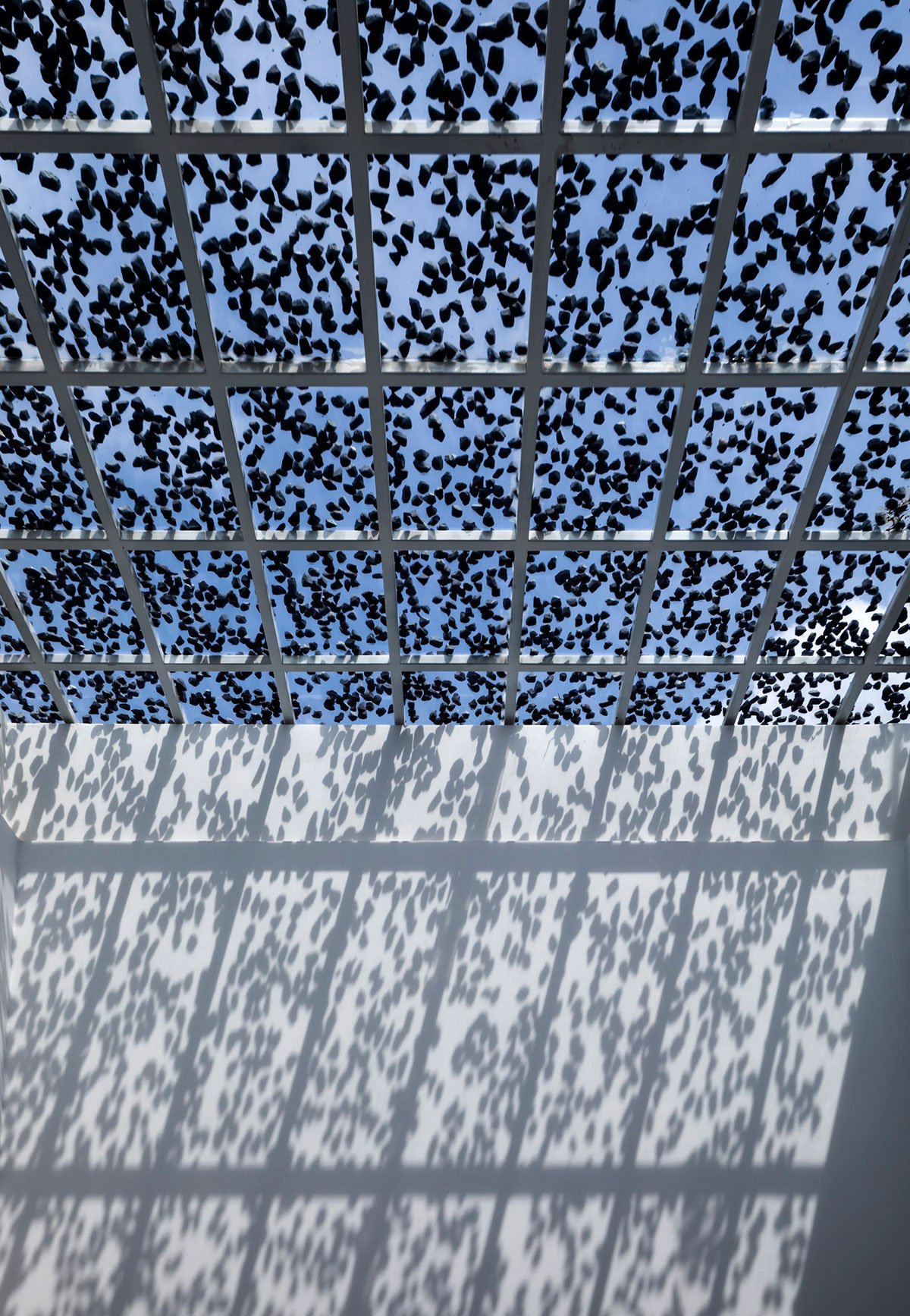 Second: When letting natural light into the house, it is necessary to calculate, experiment and check the reality to regulate the amount of light to be suitable for daily activities as well as provide enough for green plants to grow and develop. In J house, solar glass is used to reduce 40-45 % of heat in the skylight area. The solution of spreading stones above the glass also regulates light and creates shade. As a result, the indoor space is always filled with natural light but not hot, moreover, the shade from the stone layers creates an effect similar to the sun through the leaves, helping to increase the feeling of nature for townhouse space.