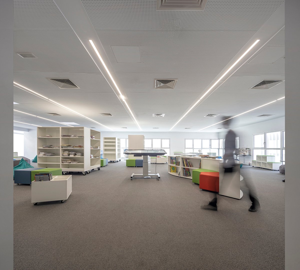 The school is divided into two main entities: the kindergarten and elementary school, and the secondary school, and adding to this, support functions such as administrative offices, library, sports facilities, and an auditorium.