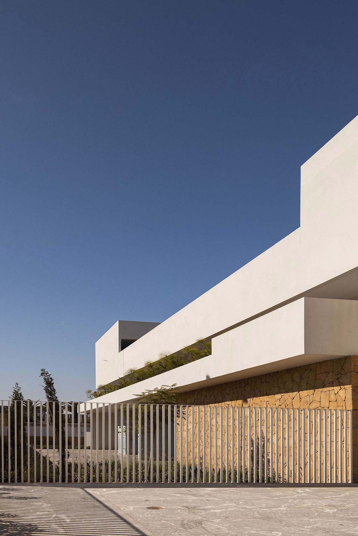 Excerpt: Jacques Chirac School is an institutional project designed by the architectural firm Saad El Kabbaj – Driss Kettani – Mohamed Amine Siana. The architecture tries to be refined, dynamic, sober, and expressive simultaneously and tries to fit in the best way with the architectural identity of Rabat by highlighting horizontal and strong lines and sober and pure white volumes. Large slits enhance these volumes. Their skin is made vibrant by vertical (and acoustic) sunshades. They are encamped on the ground by rough stone walls, characteristic of Rabat’s modernist schools.