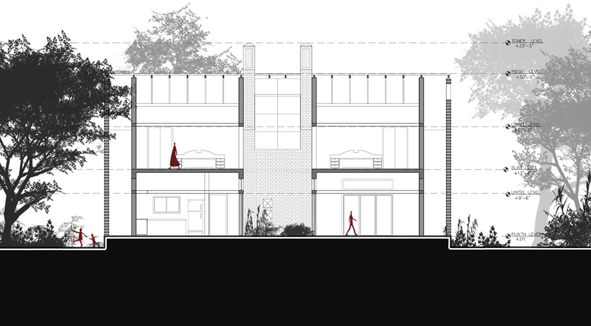 To be able to tackle the climate of the region was pivotal in the design and planning of spaces since the first sketch. All major decisions are based on the efficiency of the climatic performance of the house. The position and size of the openings, orientation and volume of spaces, choice of materials, outer layer of the jali and the windcatchers, all work in synergy to create simple but energy efficient spaces.