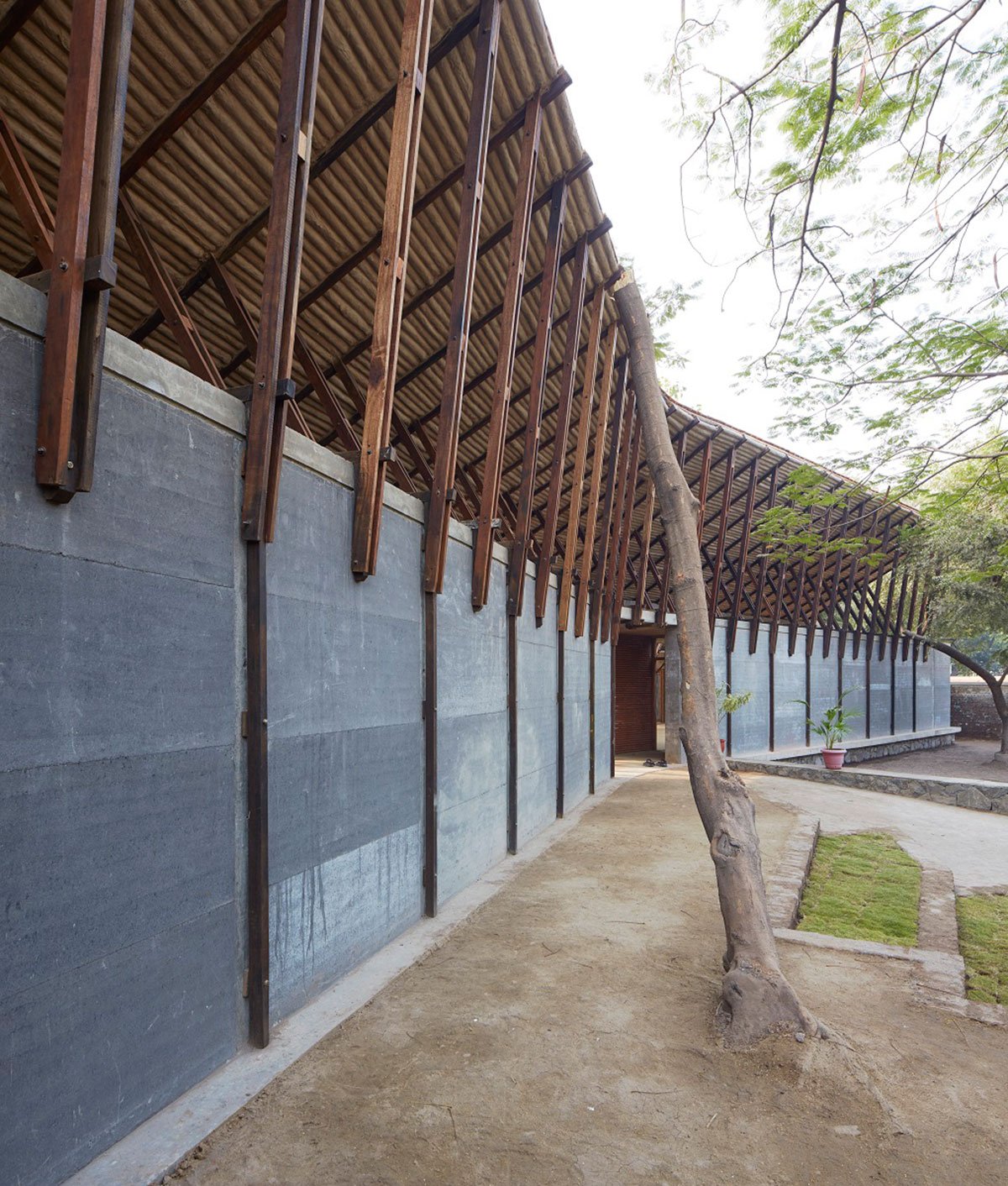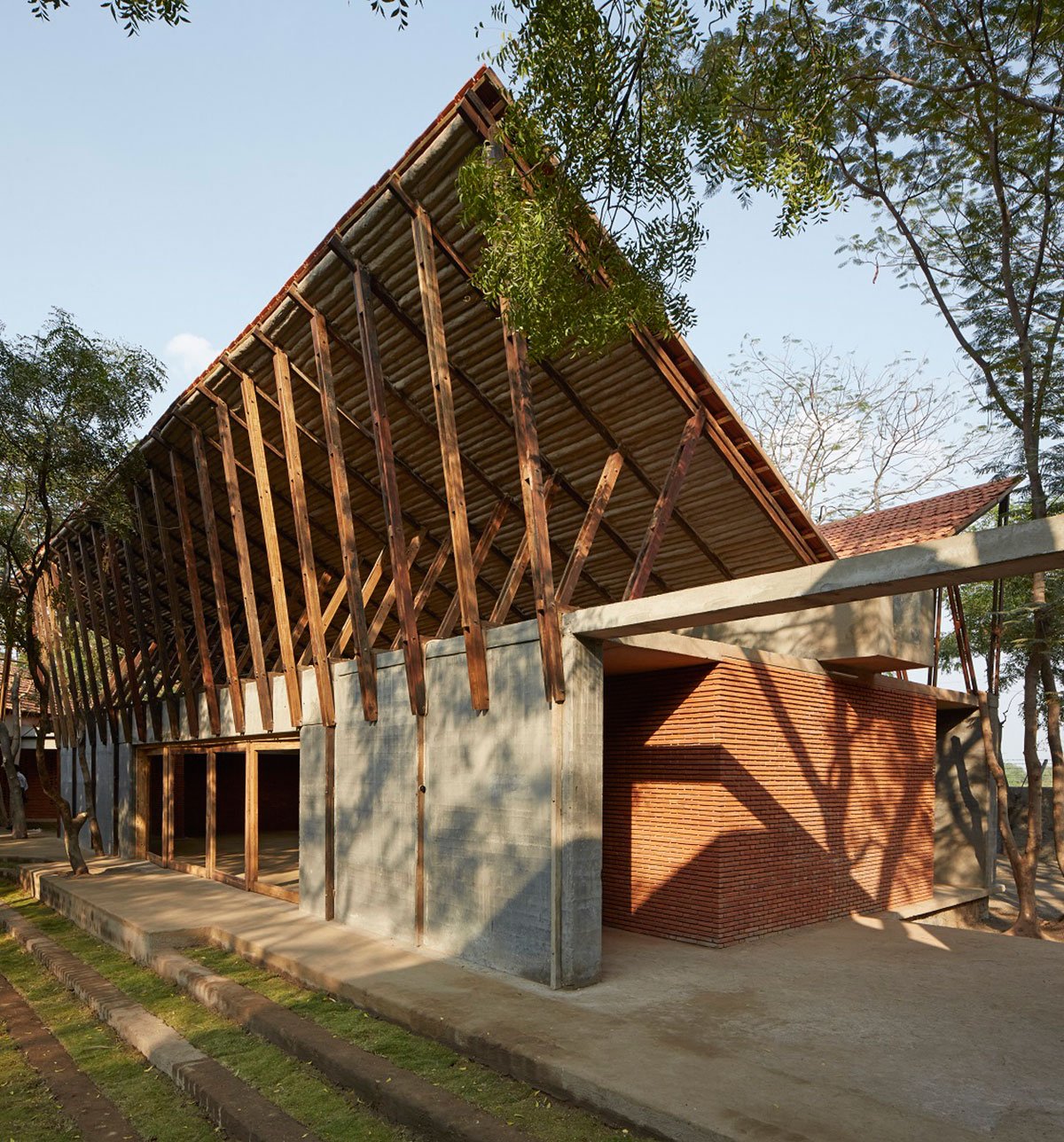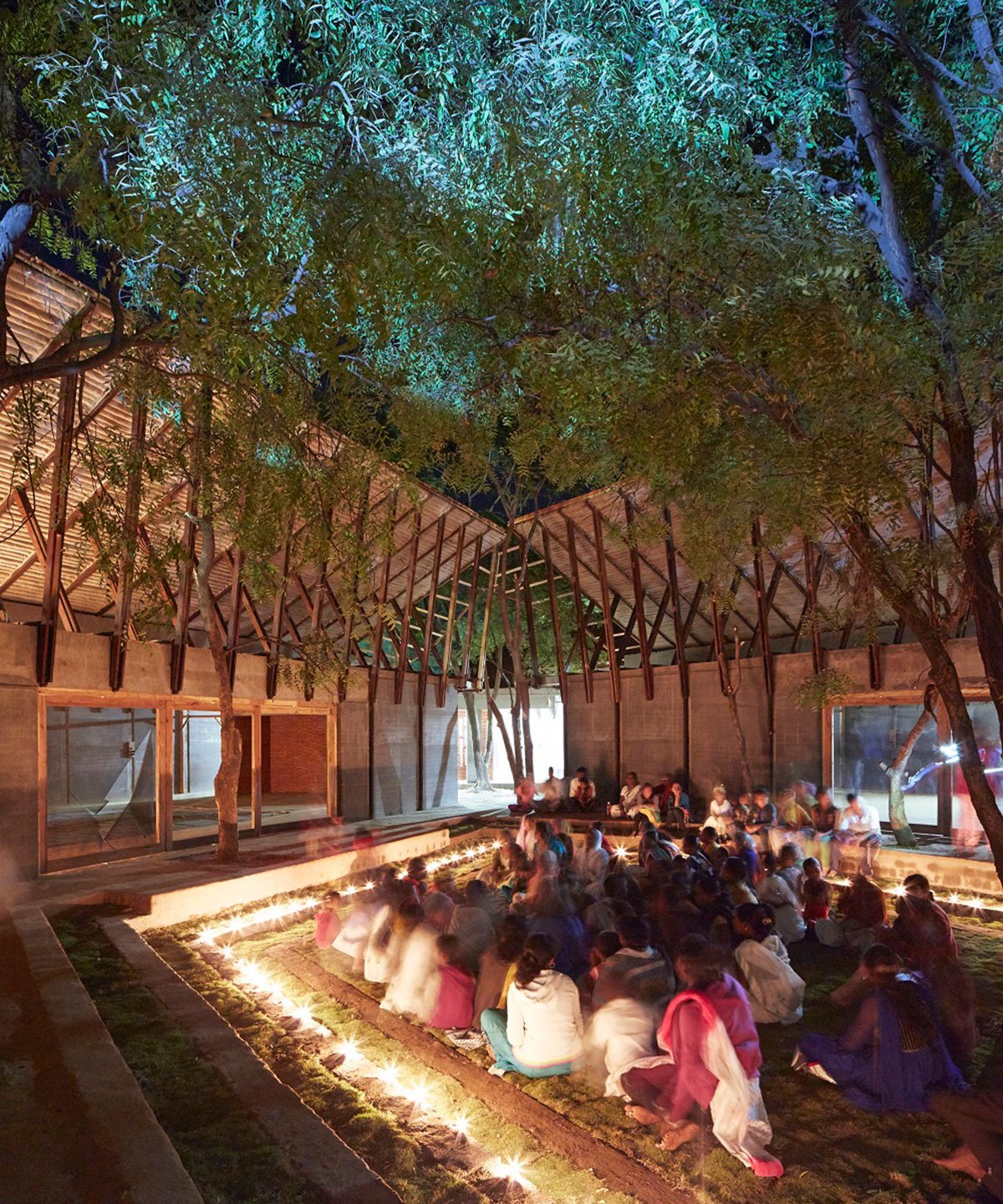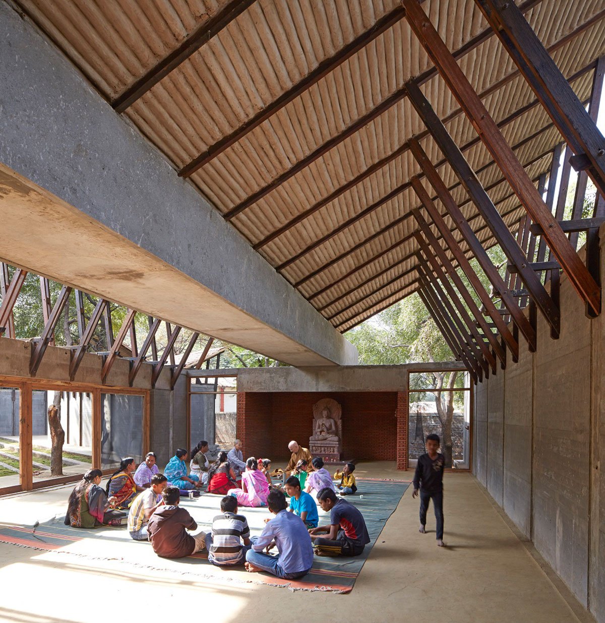 [Text submitted by the Architect] Jetavan is a beautiful Centre, in rural Maharashtra, built for the holistic development of the community. The half-acre plot has over 40 trees, and not one was cut to make place for the centre. Jetavan was built using fly ash, quarry dust, to make the walls, cow dung for the floor, and mud rolls made from used gunny bags placed on wooden rafters from old ships for the roof. The centre was designed by Sameep Padora and associates. Artisans from Hunarshala in Kutch helped build the structure, land was contributed by Godavari Biorefineries (flagship company of the Somaiya Group), and funded by donors from India and abroad. This is an initiative of the K. J. Somaiya Centre of Buddhist Studies, Somaiya Vidyavihar, and was conceptualised when Ven. Dhammadipa visited Sakarwadi 2 years ago, and thought that a Centre to cater to the all round development of the community was necessary. Many members of the community here follow Ambedkar, and follow Buddhism. Ven. Dhammadeepa felt that they must be educated in what were the basic principles of Buddhist thought. Academically, this fit in well with what the K. J. Somaiya Centre of Buddhist Studies wanted to do, as an outreach project. More importantly, Shri K. J. Somaiya wanted to create a society which was inclusive, and members of society that Hinduism had earlier denied opportunity, would be treated as the main part of Hindu Society. I believe, that Jetavan will be a Centre to teach academics, vocational studies, health, and spirituality to all members of the community. It will be a complement to the 3 schools that Somaiya Vidyavihar runs in the area.