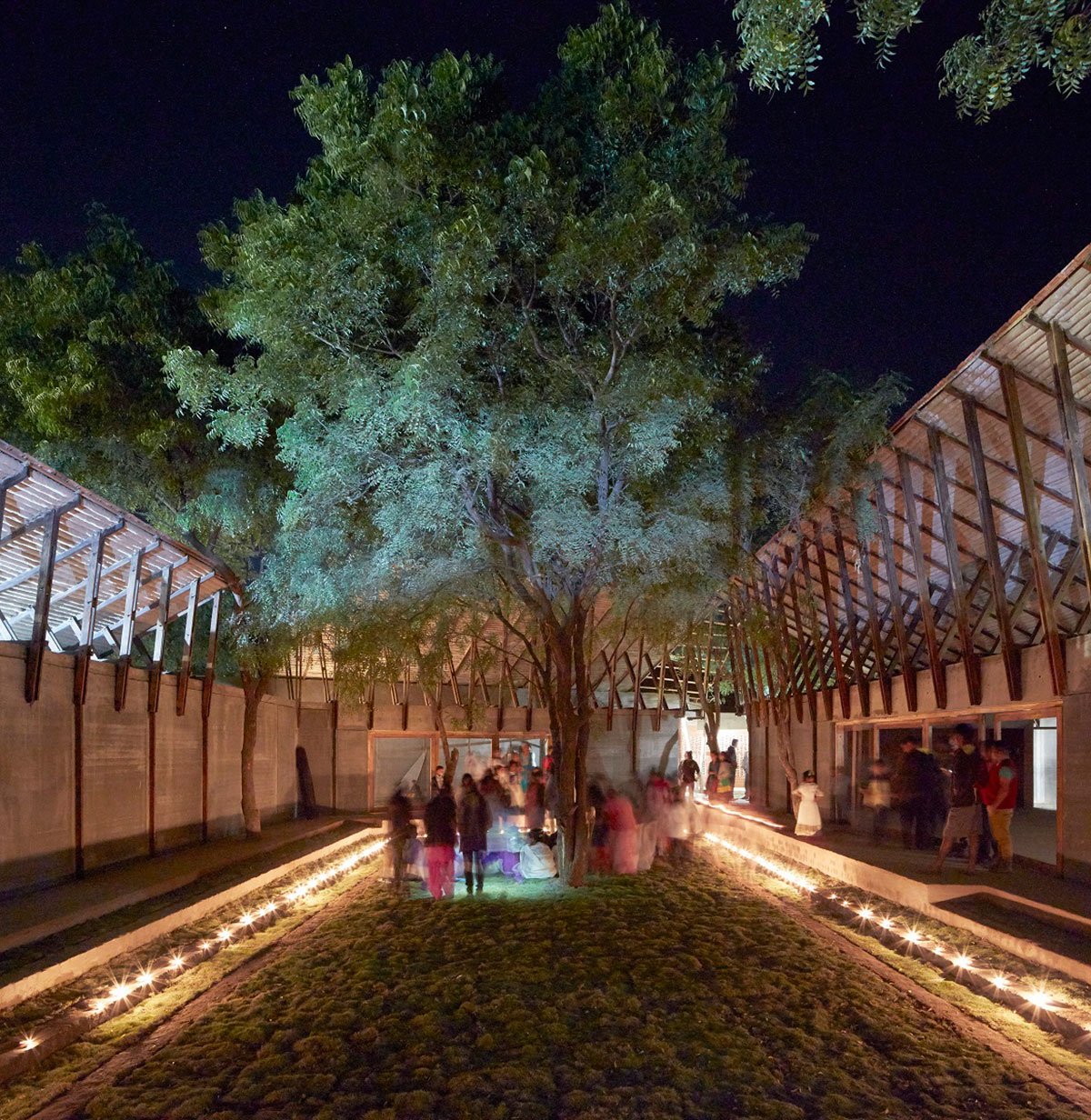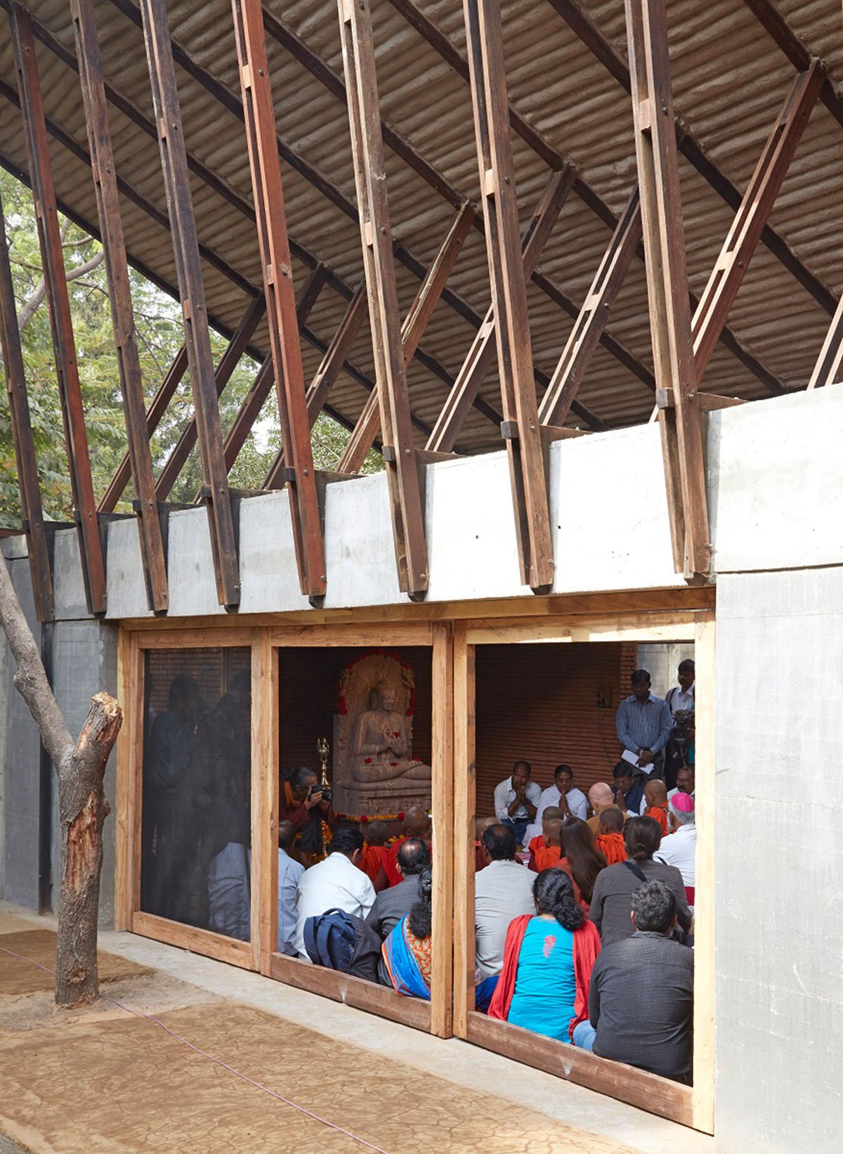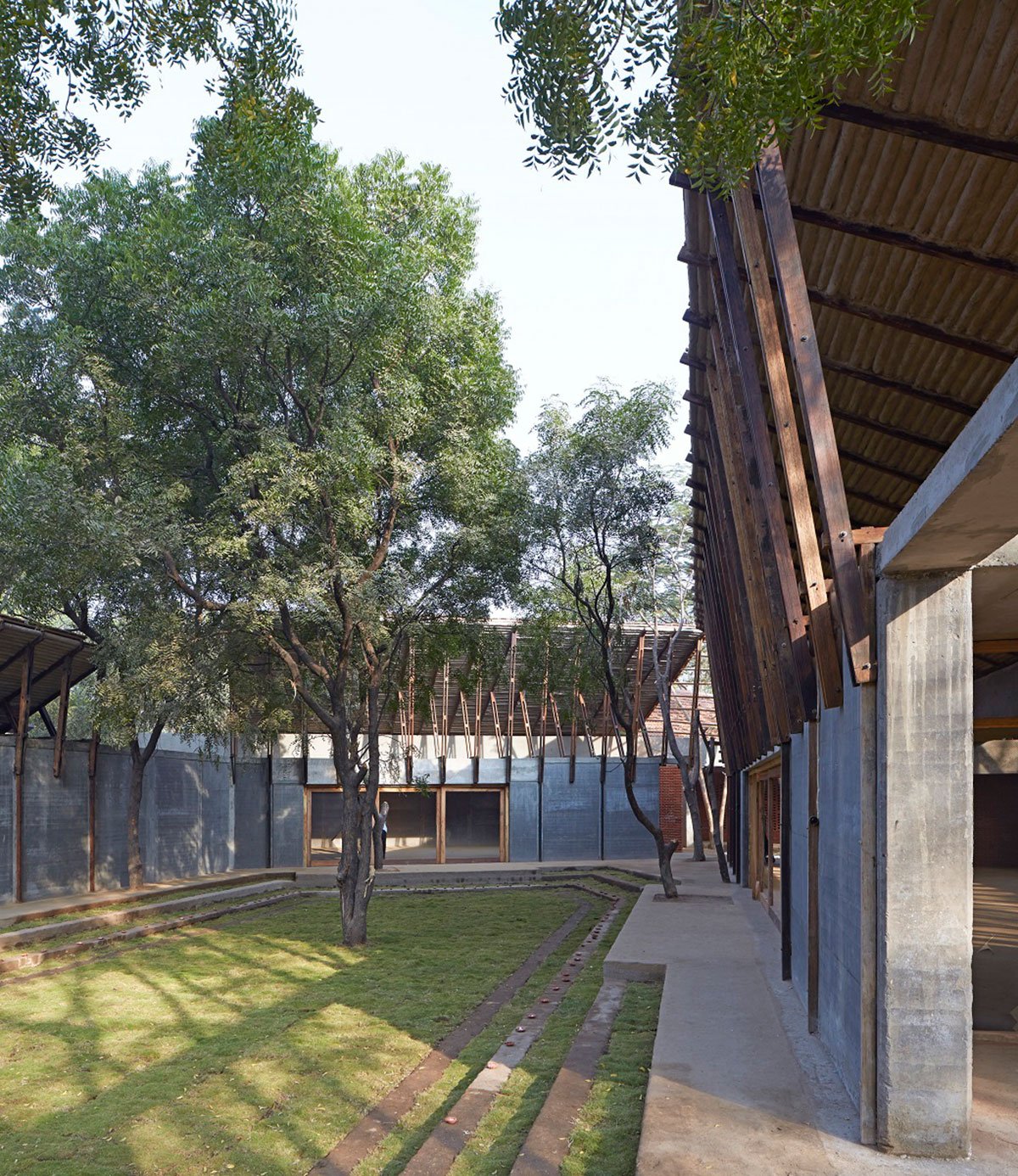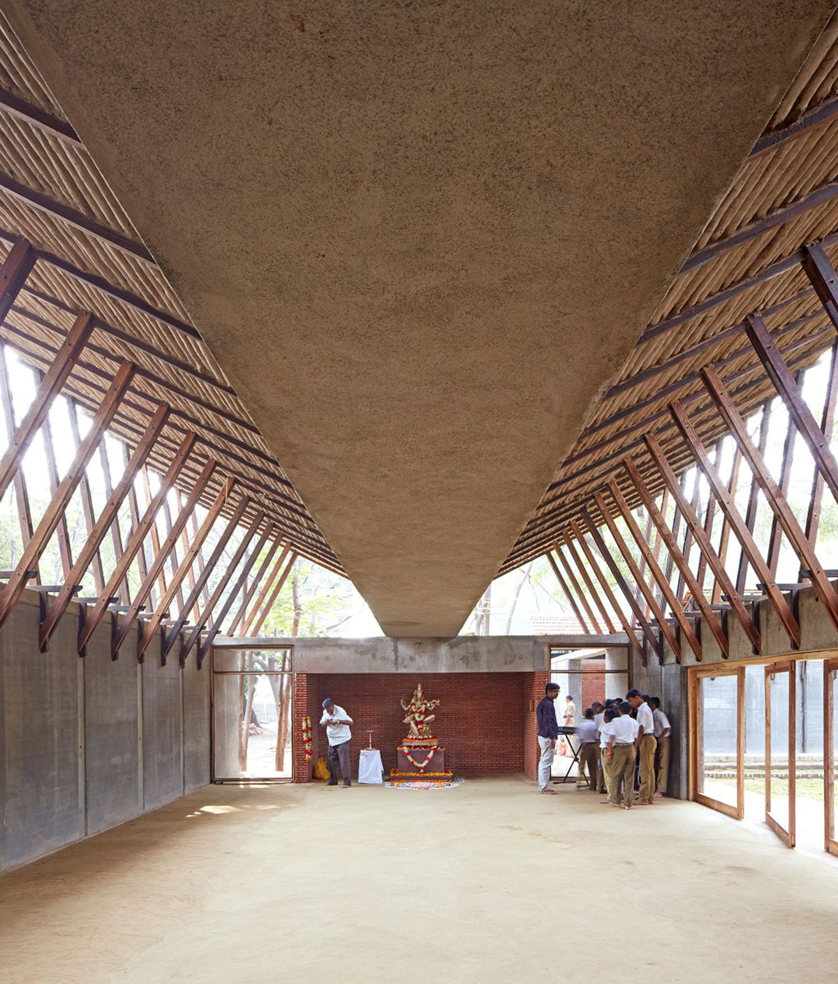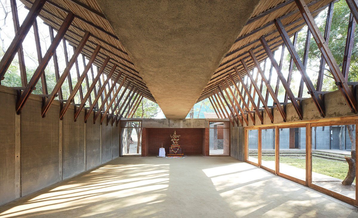 [Text submitted by the Architect] Jetavan is a beautiful Centre, in rural Maharashtra, built for the holistic development of the community. The half-acre plot has over 40 trees, and not one was cut to make place for the centre. Jetavan was built using fly ash, quarry dust, to make the walls, cow dung for the floor, and mud rolls made from used gunny bags placed on wooden rafters from old ships for the roof. The centre was designed by Sameep Padora and associates. Artisans from Hunarshala in Kutch helped build the structure, land was contributed by Godavari Biorefineries (flagship company of the Somaiya Group), and funded by donors from India and abroad. This is an initiative of the K. J. Somaiya Centre of Buddhist Studies, Somaiya Vidyavihar, and was conceptualised when Ven. Dhammadipa visited Sakarwadi 2 years ago, and thought that a Centre to cater to the all round development of the community was necessary. Many members of the community here follow Ambedkar, and follow Buddhism. Ven. Dhammadeepa felt that they must be educated in what were the basic principles of Buddhist thought. Academically, this fit in well with what the K. J. Somaiya Centre of Buddhist Studies wanted to do, as an outreach project. More importantly, Shri K. J. Somaiya wanted to create a society which was inclusive, and members of society that Hinduism had earlier denied opportunity, would be treated as the main part of Hindu Society. I believe, that Jetavan will be a Centre to teach academics, vocational studies, health, and spirituality to all members of the community. It will be a complement to the 3 schools that Somaiya Vidyavihar runs in the area.
