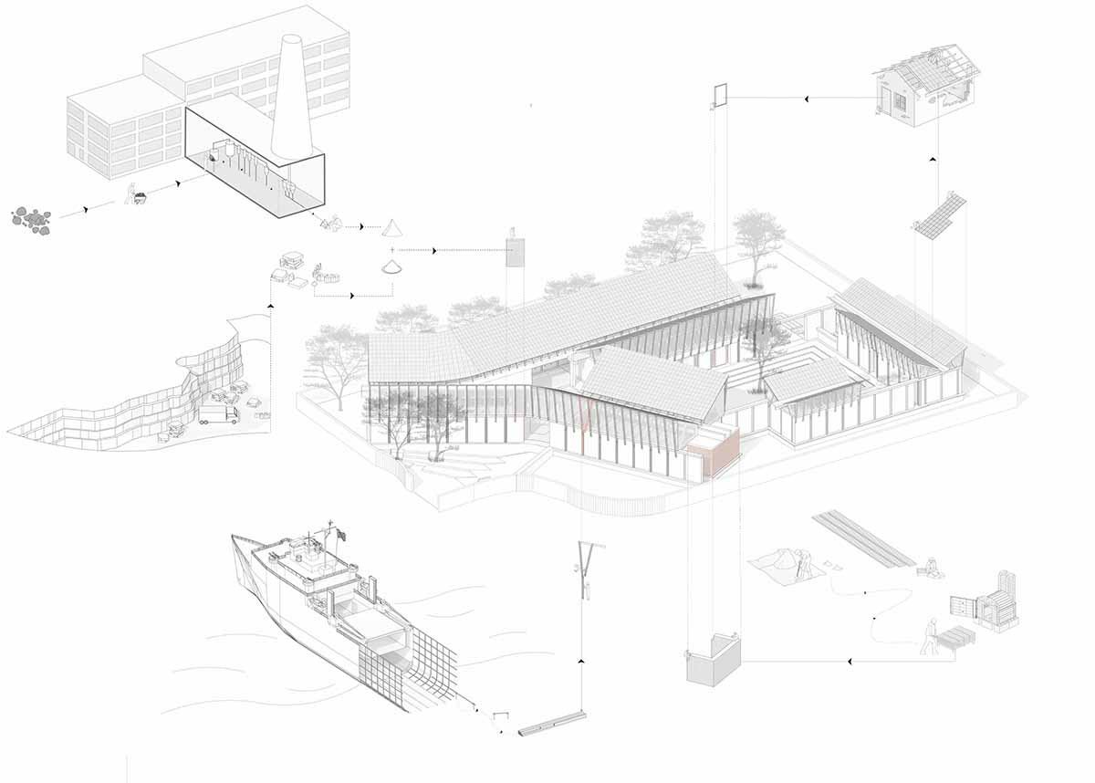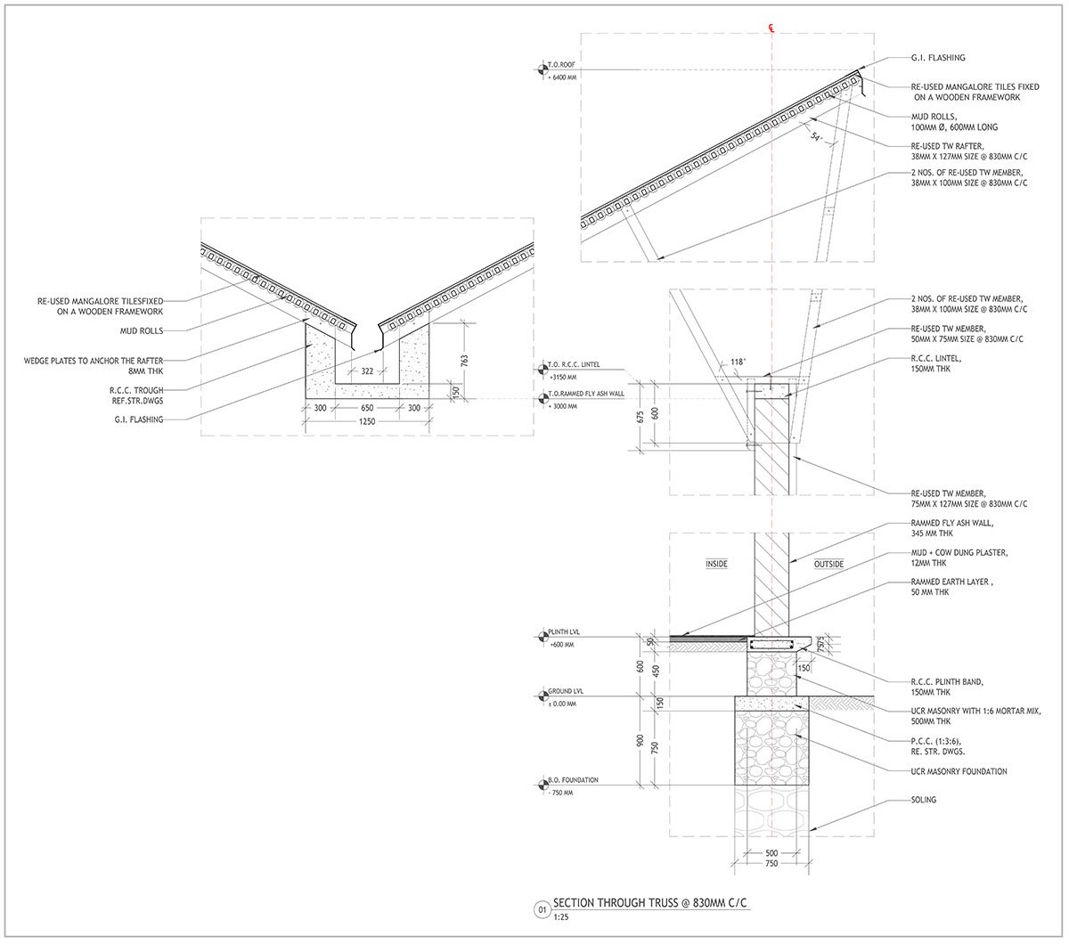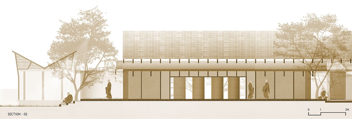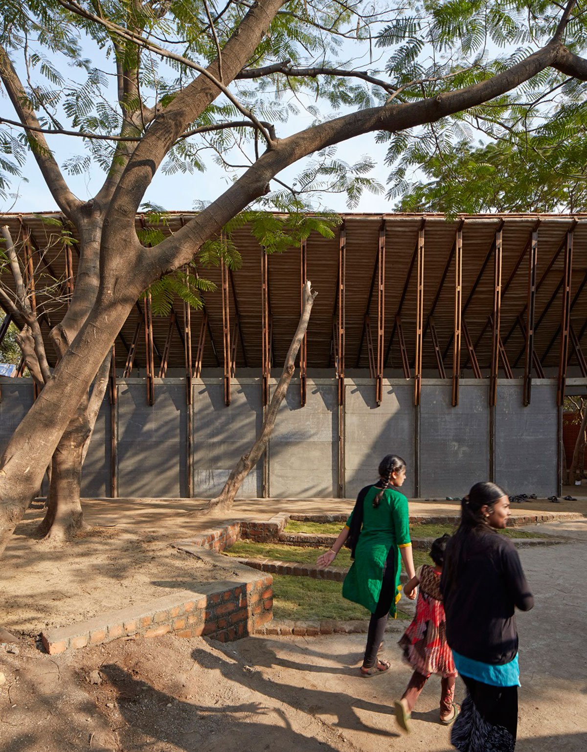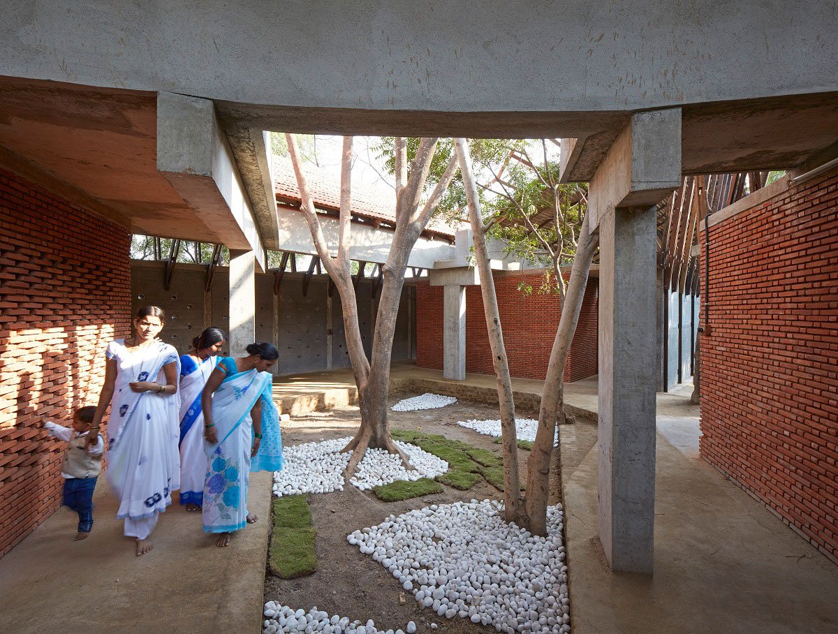 [Text submitted by the Architect] Jetavan is a beautiful Centre, in rural Maharashtra, built for the holistic development of the community. The half-acre plot has over 40 trees, and not one was cut to make place for the centre. Jetavan was built using fly ash, quarry dust, to make the walls, cow dung for the floor, and mud rolls made from used gunny bags placed on wooden rafters from old ships for the roof. The centre was designed by Sameep Padora and associates. Artisans from Hunarshala in Kutch helped build the structure, land was contributed by Godavari Biorefineries (flagship company of the Somaiya Group), and funded by donors from India and abroad. This is an initiative of the K. J. Somaiya Centre of Buddhist Studies, Somaiya Vidyavihar, and was conceptualised when Ven. Dhammadipa visited Sakarwadi 2 years ago, and thought that a Centre to cater to the all round development of the community was necessary. Many members of the community here follow Ambedkar, and follow Buddhism. Ven. Dhammadeepa felt that they must be educated in what were the basic principles of Buddhist thought. Academically, this fit in well with what the K. J. Somaiya Centre of Buddhist Studies wanted to do, as an outreach project. More importantly, Shri K. J. Somaiya wanted to create a society which was inclusive, and members of society that Hinduism had earlier denied opportunity, would be treated as the main part of Hindu Society. I believe, that Jetavan will be a Centre to teach academics, vocational studies, health, and spirituality to all members of the community. It will be a complement to the 3 schools that Somaiya Vidyavihar runs in the area.