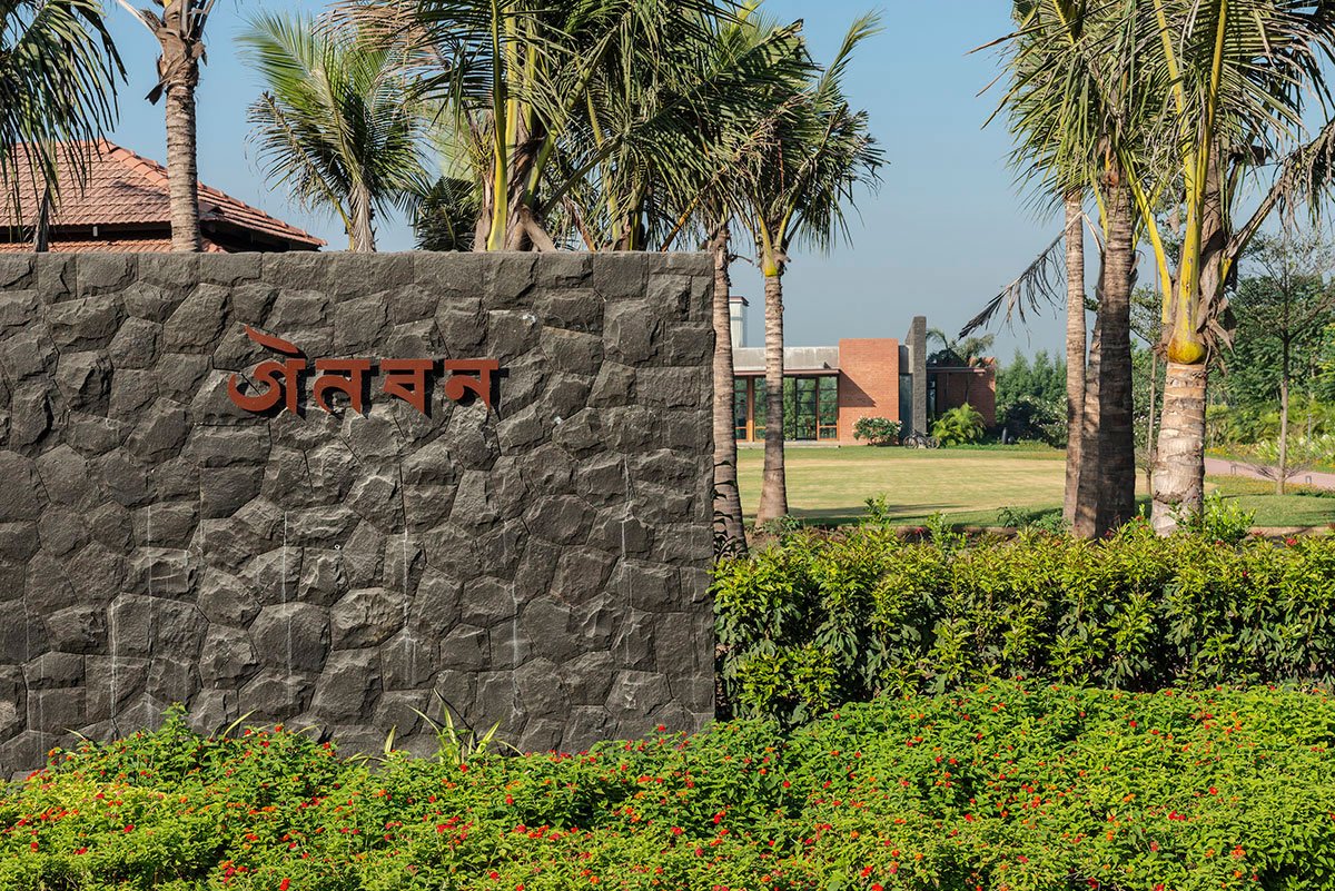 In 10,000 sq. mt. of the linear site, to achieve the scale of space, we divided the plot in a sequence of various private spaces, according to it’s needs which were protected by landscape or a stone wall. The plot is divided into six major parts which include, The entrance, Semi-open pavilion surrounded by coconut trees, Open Lawn, The built structure, Back Court, and farmland, which can be easily identified in the layout. A dramatic entrance is created with a stone wall and landscaped central region that defines the character of the space. The house is designed by dividing the regions based on the nature of spaces, giving a gathering space in between for interaction along with public and private zones on either side. The north side of the house is surrounded by Champa which implicates the experience.