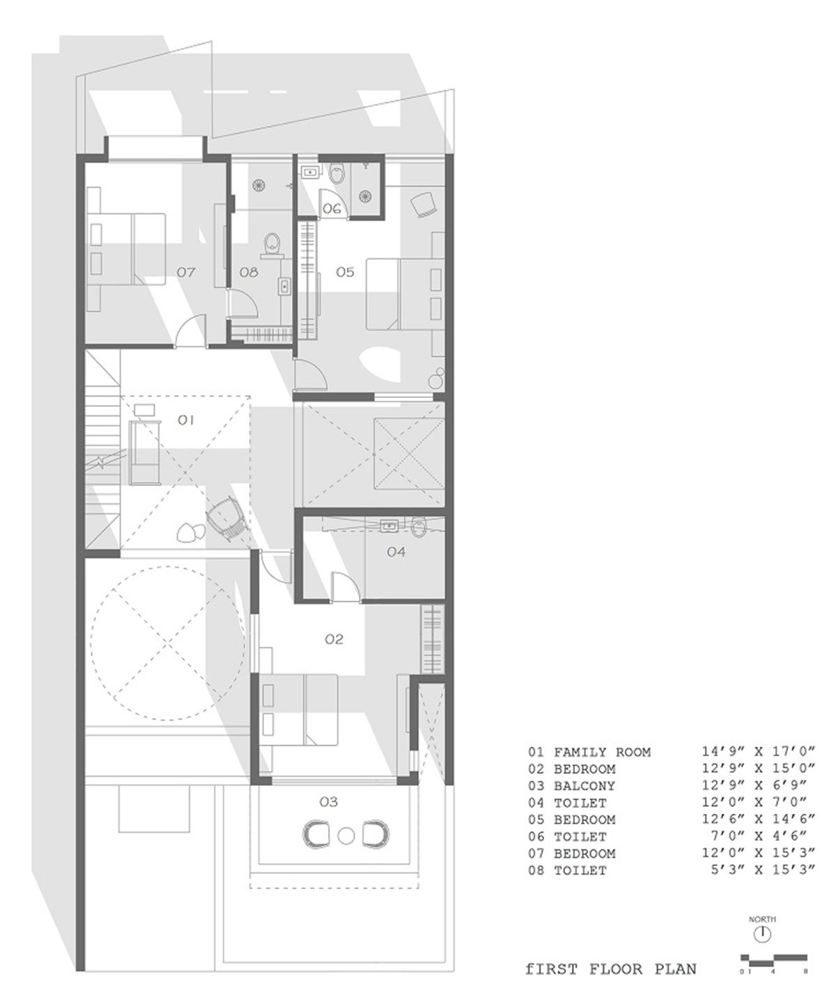 The site abuts access way on the south and other two sides by adjoining structures. Its location is peculiar as the site is located in the city fringes. The surrounding dwelling unit comprises of peculiar semi urban row houses. South facade has the main entry and is flanked by a series of balconies and stepped terrace on each floor. Activities are distributed on various levels- semi private spaces on ground floor while private spaces on upper floors.