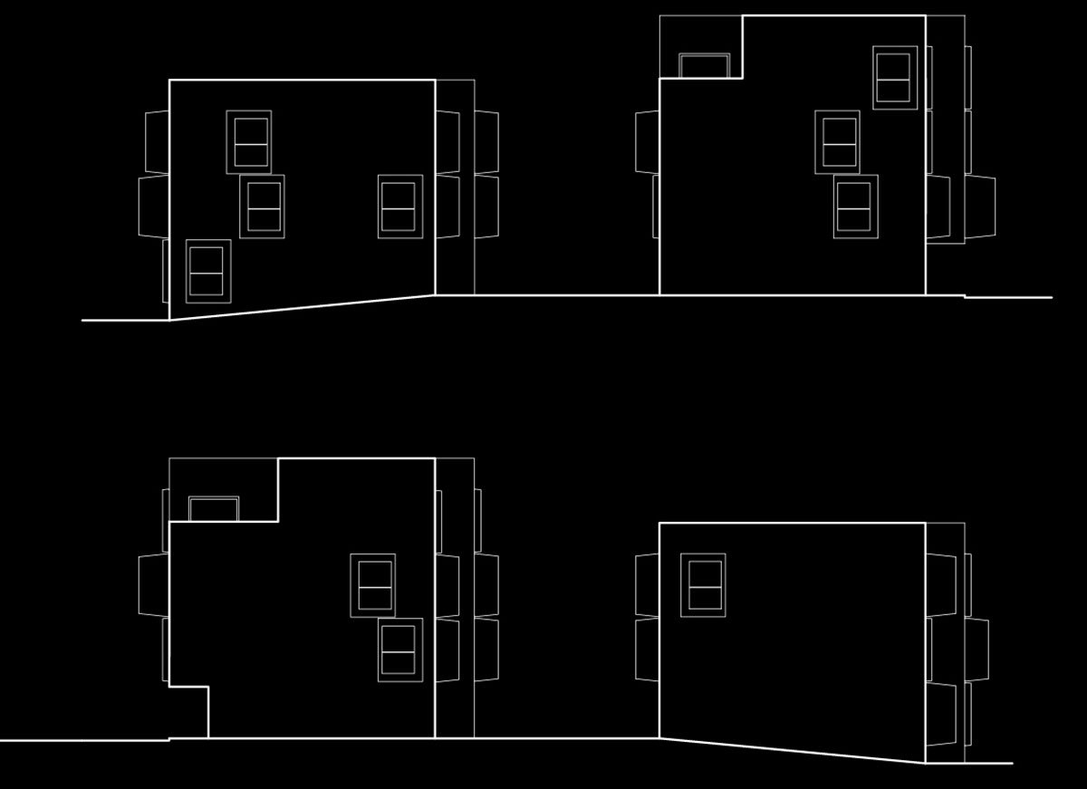 In order to come closer to the size of the neighborhood units, each tract is divided into four smaller volumes which are not aligned and which, additionally, also vary in color tone. In an effort to assure a more consistent approach to the spatial criteria and in order to attain the greatest possible sense of privacy for residents, each of these smaller volumes also in terms of inner organization functions as a separate unit.