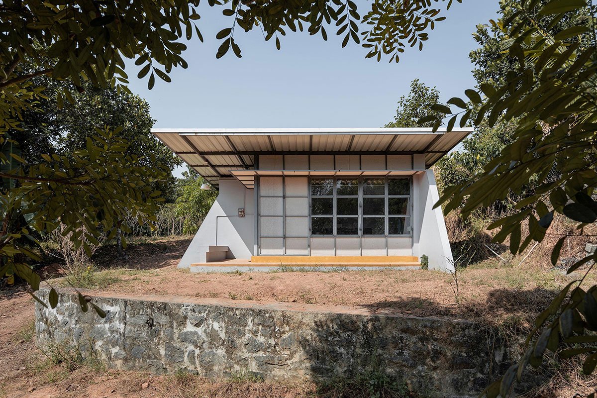 Excerpt: Located in the rural part of Kottayam district, Kerala, KGR Farm Cabin by N&RD is a one-room day shelter that serves as a multipurpose family gathering space. The cabin is strategically located for privacy and faces east, offering a clear view of the entire property from inside. The structure features a room with minimal seating, a kitchenette, an attached toilet, and a store room for safekeeping farm equipment and fertilisers.