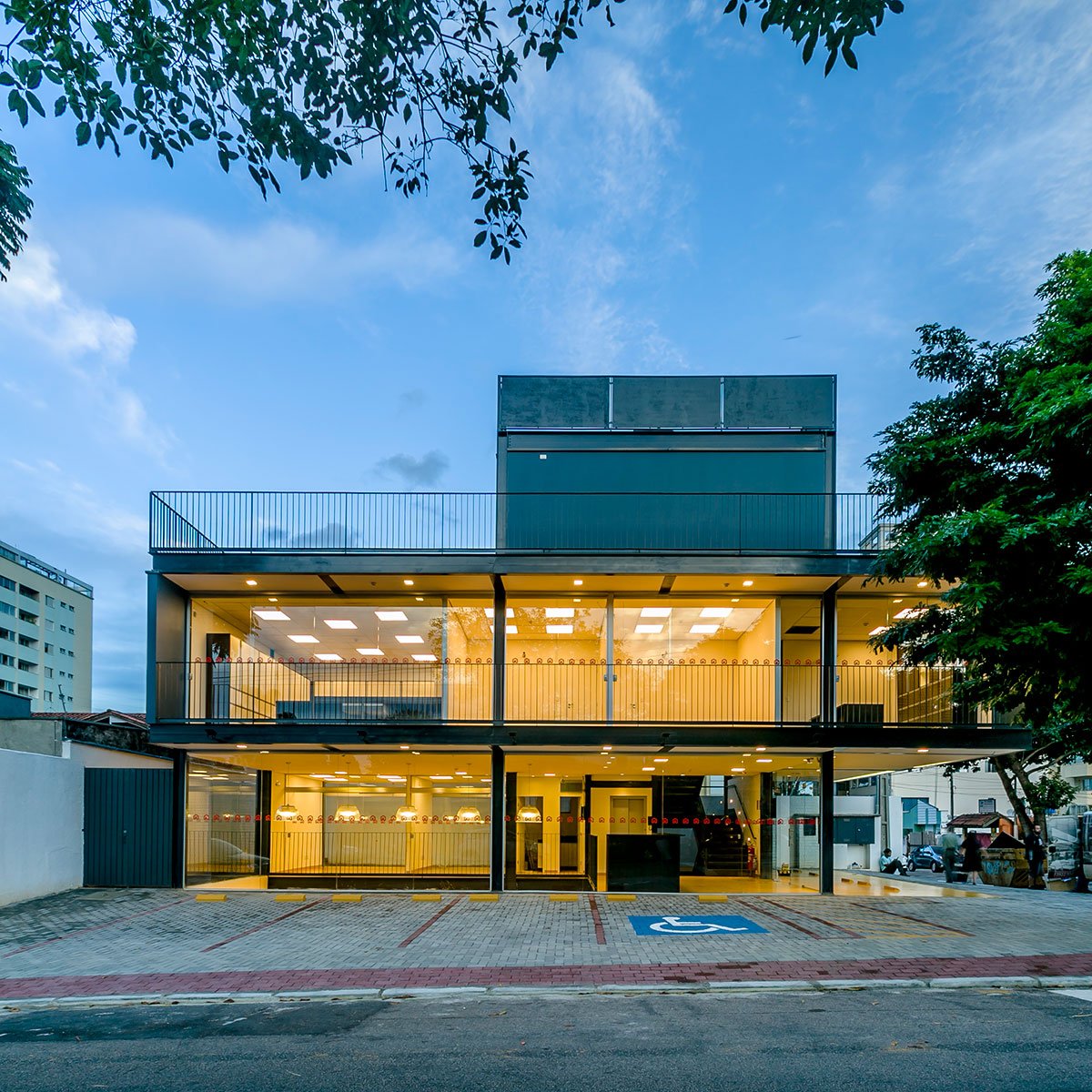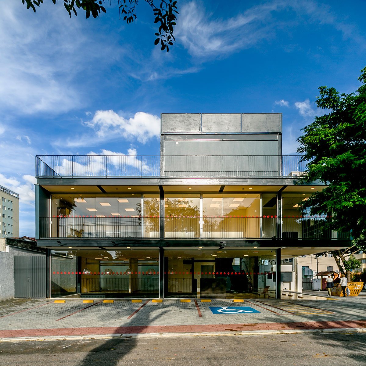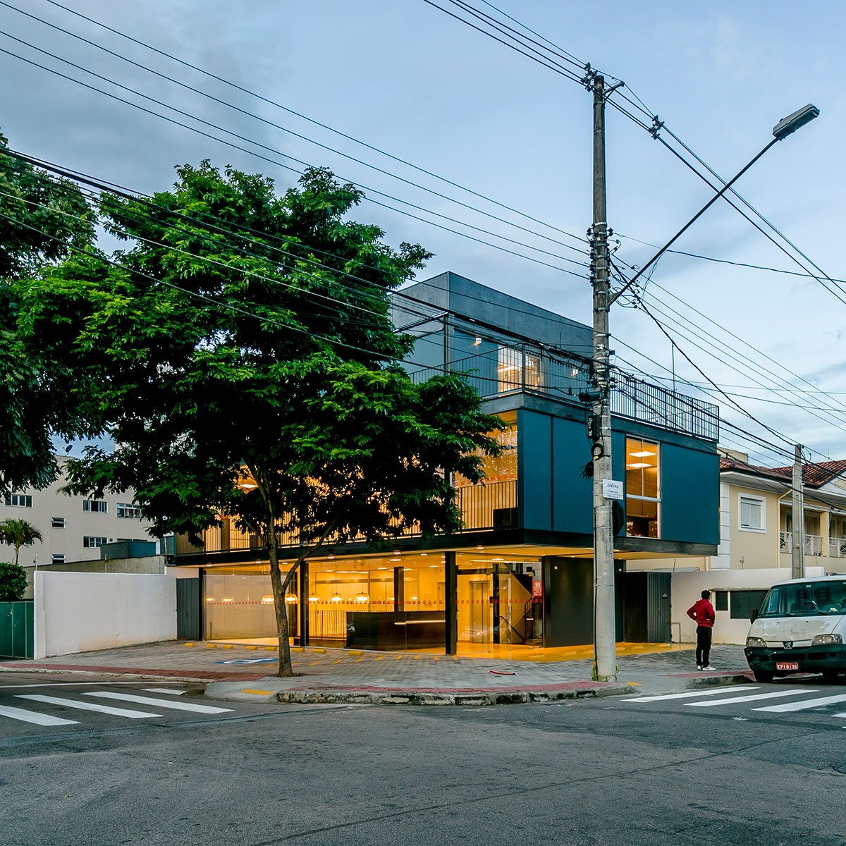 Excerpt: Kogake, an office building by Obra Arquitetos, makes use of the city to be able to exist and intends to be completely open to the city creating a free space with the sidewalk. The design houses underground spaces, with double-legged stretches, and the programs of a greater concentration of people were sheltered. The access from the street is the intermediate level, housing the reception and a small real estate financing agency.