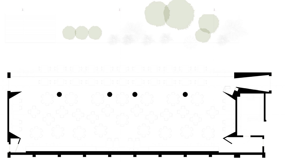 It will be the strong relation of this space with the mentioned garden, which presents itself as the project’s generating idea, bringing the garden to the interior of the restaurant, implying a total permeability of the spaces, interior and exterior, emphasizing the spaciousness and brightness that define the space.