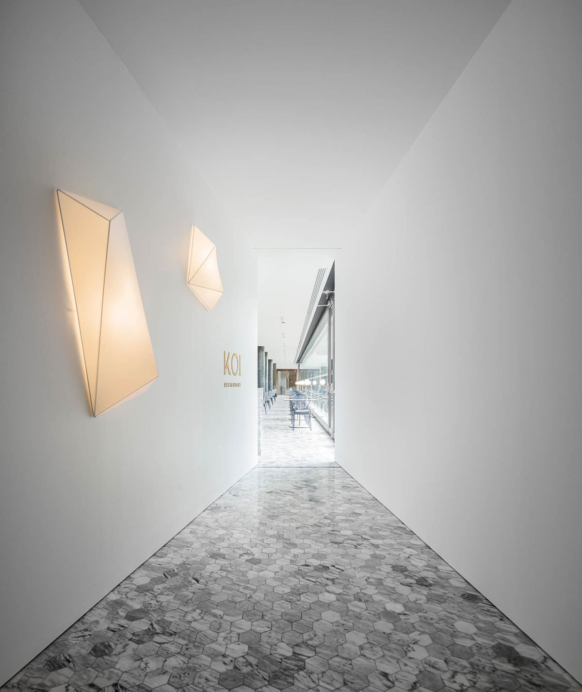 Excerpt: Koi Restaurant, designed by Box arquitectos, is characterized by its garden of strong oriental inspiration and its mirror of water inhabited by carp [KOI]. The restaurant is characterized as an interior garden, an integral part of the exterior, mirroring the same symbolism and balance, with the presence of vegetation that flows through the ceilings, in line with the various moments of artificial lighting with scenic effect.