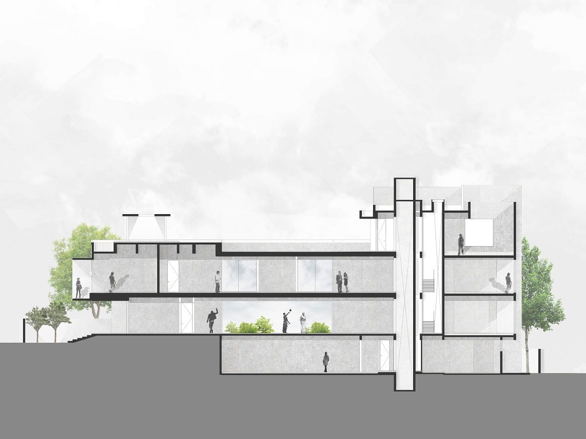 [Text as submitted by Architect] The conventional courtyard house is conceived around an open space (garden). Typically the courtyard has a distinct character which is homogenous. Questioning this cliché, the idea was to articulate a new experience in the courtyard by having a large garden and a large water body in it. The juxtaposition of the water body and the garden along with central spine of the house helps organize the rest of the program. The central void segments the public and the private zones of the house at the ground level. The central spine which connects the garden and the pool in one axis and the public and private in the other axis is envisioned to transform into a quasi-art gallery over time. The central spine at the upper level accommodates a library and connects the bedrooms on either side of the courtyard. All the spaces flanking the courtyard have a deep porous edge in the form of balconies to negotiate the transition from outside to inside. These deep balconies also help cut the glare and the heat to insulate the interiors better.