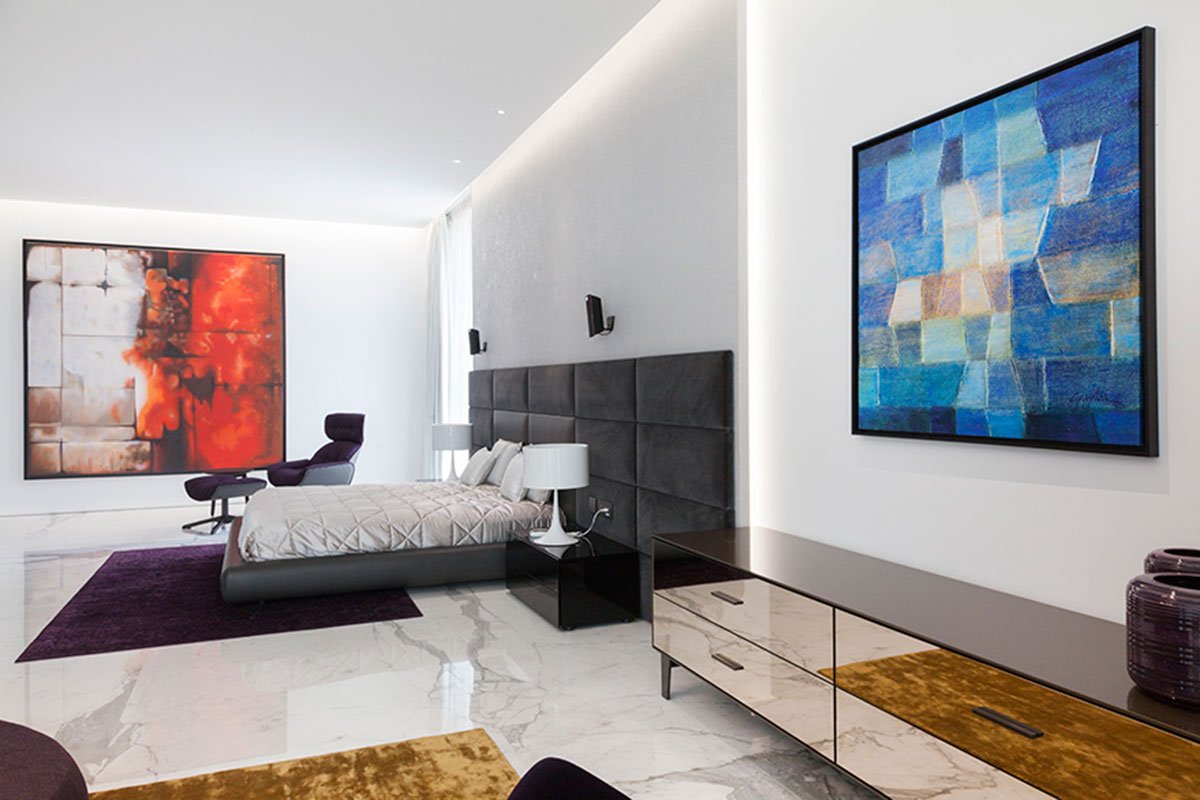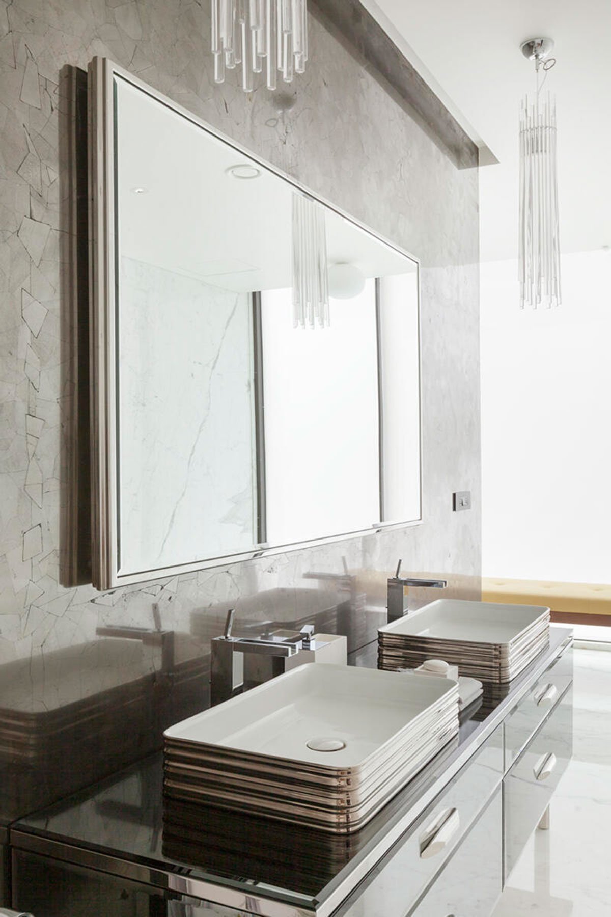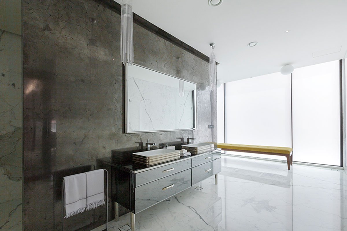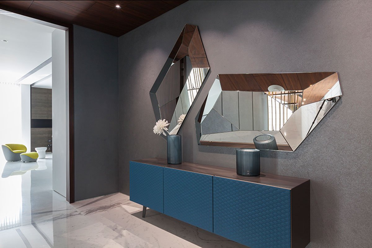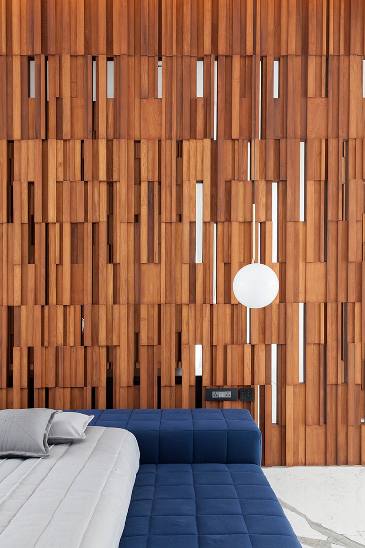 The formal articulation of the house has a minimalistic sensibility to it. Large plane surfaces enclose generous spatial volumes that overlook gardens both internal and external. A syncopated set of louvers along with the deep recesses for the windows help cut the harsh sun but enable picturesque views of the landscape. A similar sensibility flows into the interiors. Just like how museums are conceived in a way to showcase the art work, the house on the inside is imagined to be a mute backdrop to receive all the furniture in varying colors, shapes and textures. The muted backdrop helps create a cohesive feel despite the deluge of colors with the furniture and the art work. Deliberate restraint has been exercised in articulating the form and rendering the same with material.
