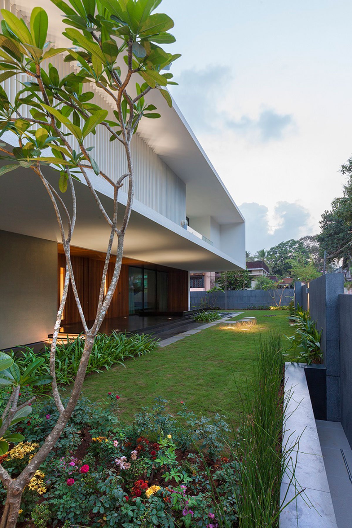 Excerpt: Kowdiar villa, designed by Cadence Architects, articulates a new experience in the courtyard by having a large garden and a large water body. The juxtaposition of the water body and the garden along with central spine of the house helps organize the rest of the program. The formal articulation of the house has a minimalistic sensibility to it. Large plane surfaces enclose generous spatial volumes that overlook internal and external gardens.