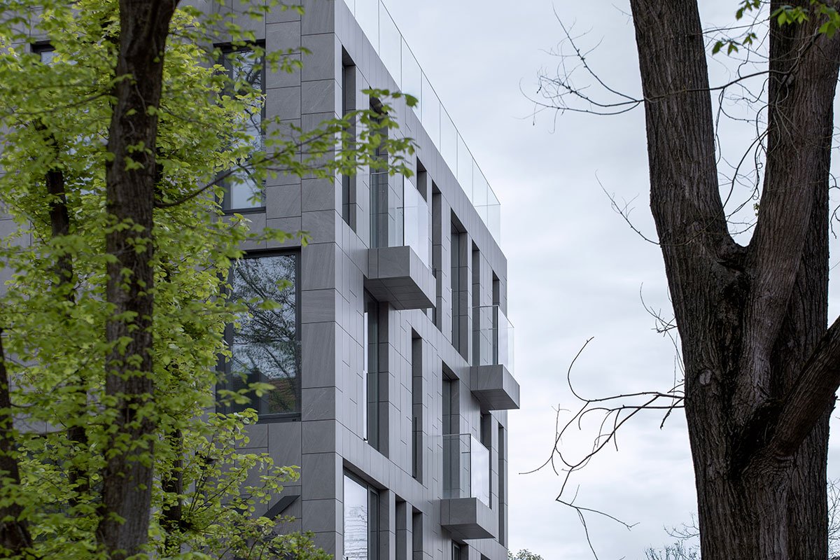 KR is a very “silent” building. Its simplistic volume and minimal usage of diversity of materials give total respect to the surroundings. The façade materials are intended to be in one plane without any unnecessary details and ornaments.