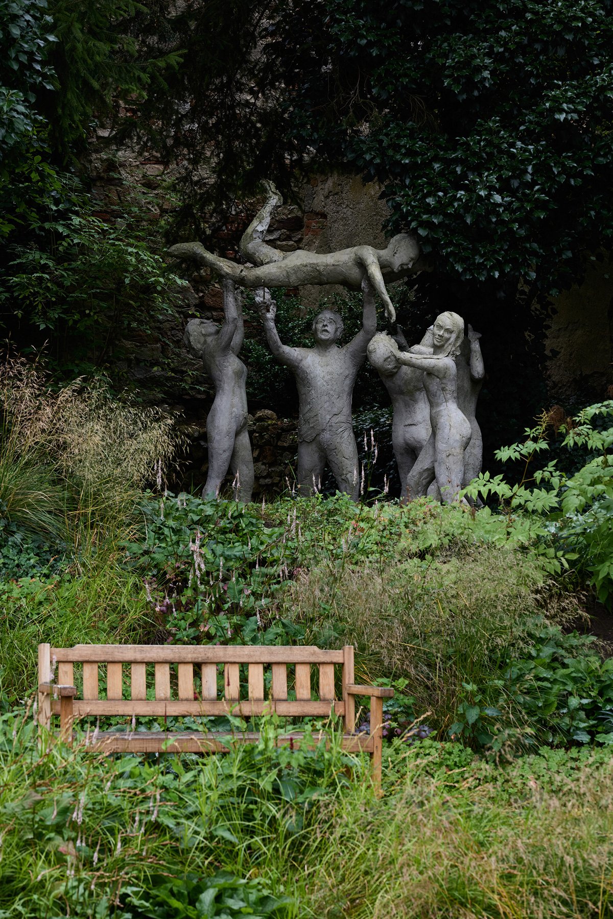 The basic concept is strictly geometric—derived from the uncovered historical design language, which gives the garden a clear order. In detail, however, the solutions are entirely contemporary and highly sustainable, with an emphasis on recycling, rainwater management, and biodiversity support. Into the strict lines enters the natural wildness of plants, creating a striking contrast. The entire terraced garden is framed by a Baroque stone wall, lined with south-facing greenhouses and growing sheds.