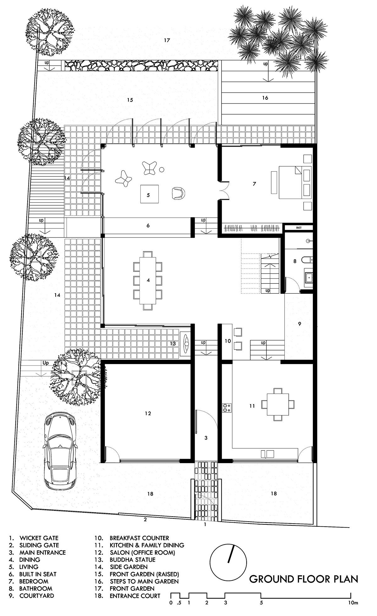The villa’s design revolves around a deliberate composition of interlocking rectangular geometries. Carefully juxtaposed, these forms establish a sense of unity and contrast, reflecting a philosophical dialogue between simplicity and complexity. This spatial choreography resonates with the rhythms of suburban life while challenging conventional aesthetics associated with Sri Lankan family homes, offering a fresh perspective that bridges modernity and tradition.