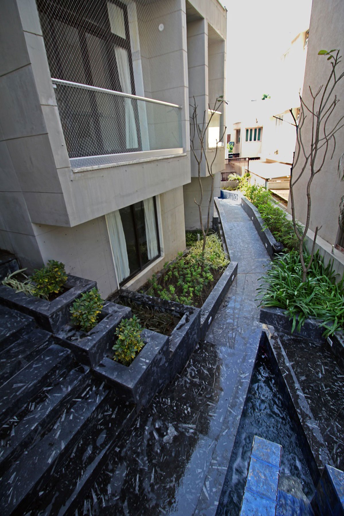 A physical barrier which not only helps us maintains the privacy of the end user but also enhance the view of the end user. Beyond enhancing the view it also ensures that we create certain pockets which hold planters that cater to the aspect of it being a green living wall, in future creepers would go beyond their holder and entirely sprawl all over the wall, this would later then help water retention and keep moisture intact.