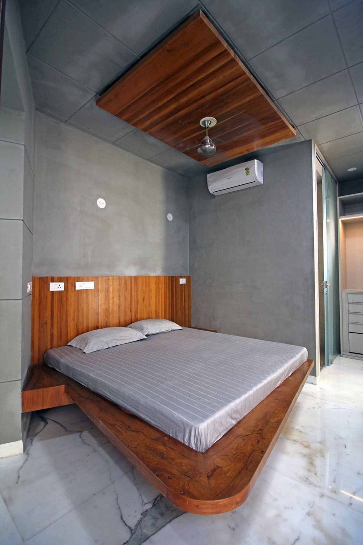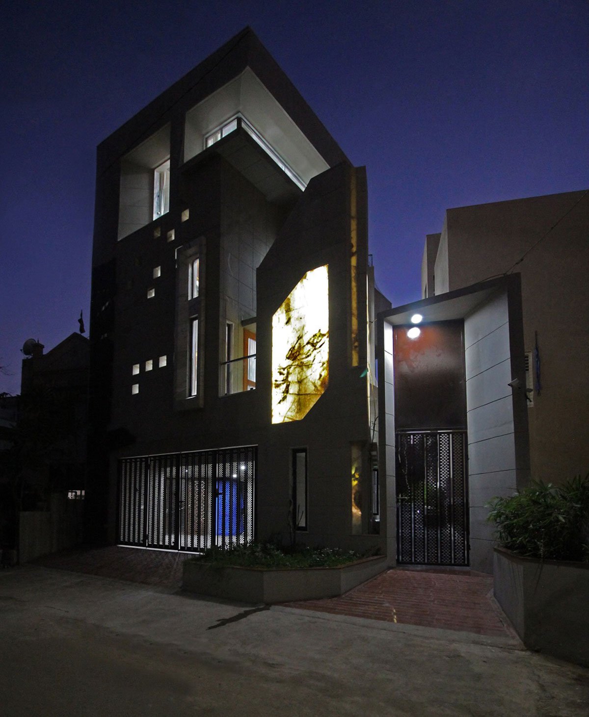 [Text as submitted by Architect] Located at Rajkot Gujarat – The climatic conditions, the topography, the landform are all local to the typical scenario available in Gujarat. Rajkot has a semi-arid climate, with hot, dry summers from mid-March to mid-June and the wet monsoon season from mid-June to October, when the city receives 590 mm of rain on average. The months from November to February are mild, the average temperature being around 20 °C, with low humidity. The shape of the site induces linear geometry in plan which one would say is not the usual norm for a home. Yet due to this shape the end product achieved by us satisfies not only the end user but also the constraint posed.