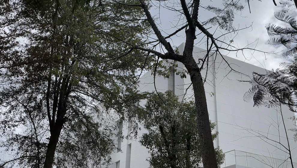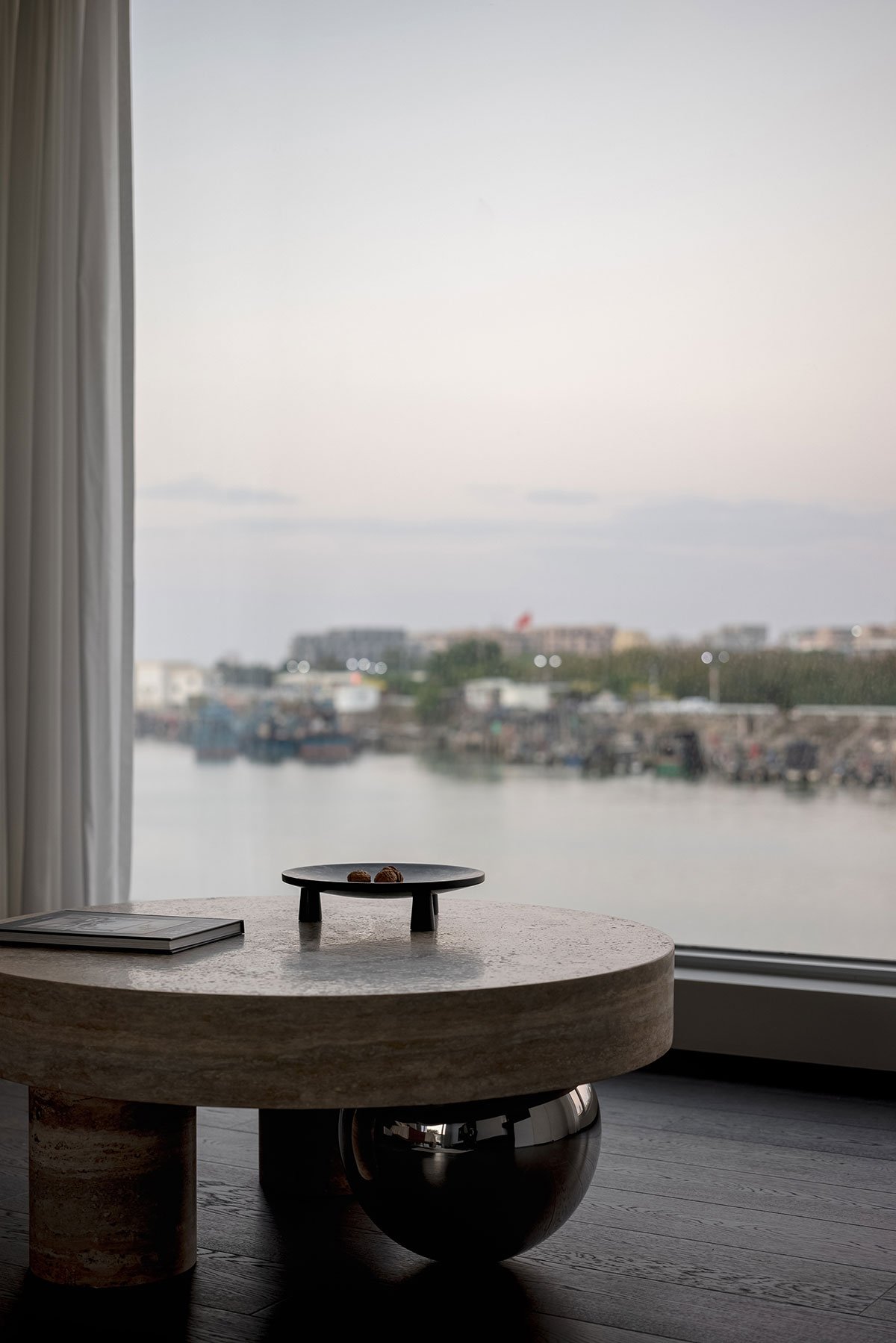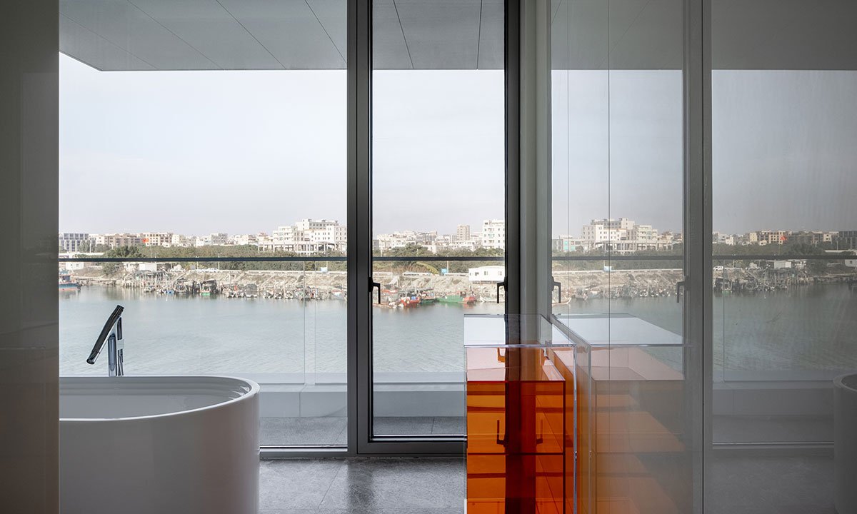 The silent building, with the power of quietness and a pure white tone, makes everything around it, including the wind, water, trees, sunlight, birds, and fishing boats, become beautiful with sound.
