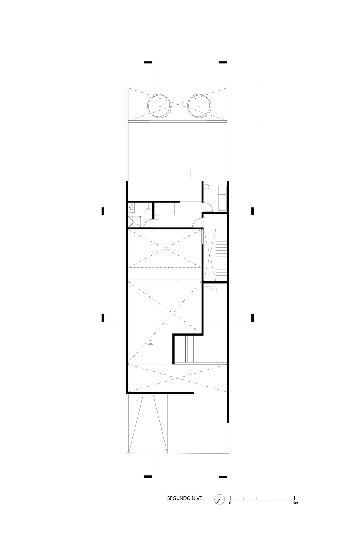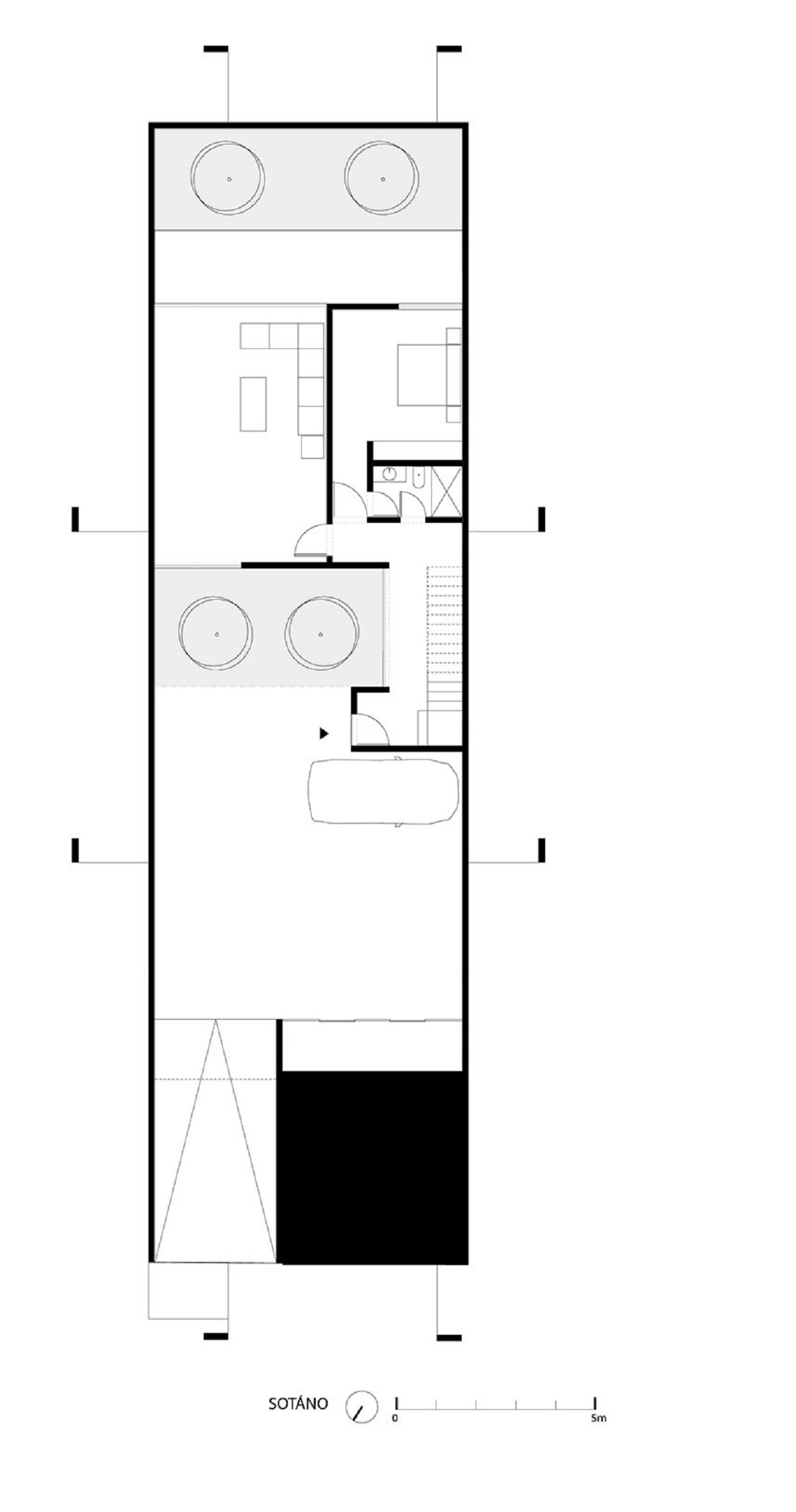 On a plot of 10 meters wide by 35 meters deep, equal to the proportion of the Gilardi house by Luis Barragán, and with a topography with a drop of 3 meters, the house is articulated through patios that emerge from the basement dividing the areas into a public and private house.