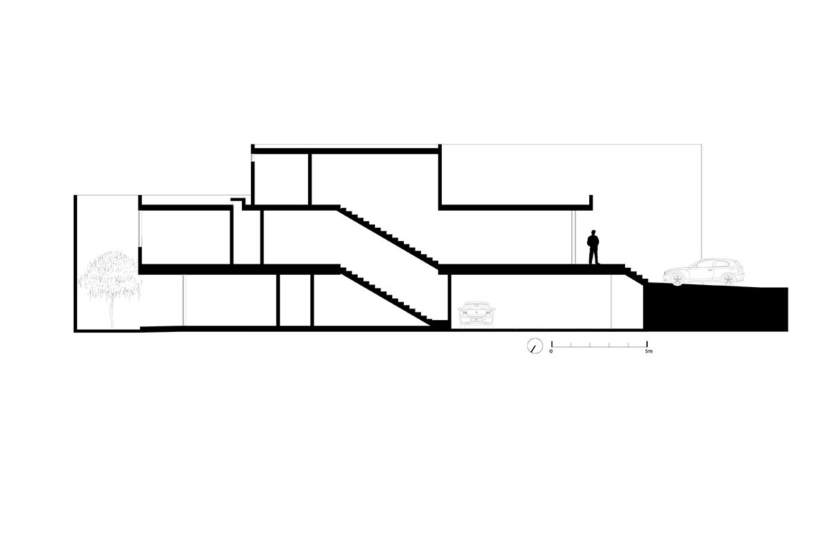 The house, stereotomic, raises its walls wrapping itself in an introspective architecture, where the relationship between the interior and the exterior exists but is not completely evident.