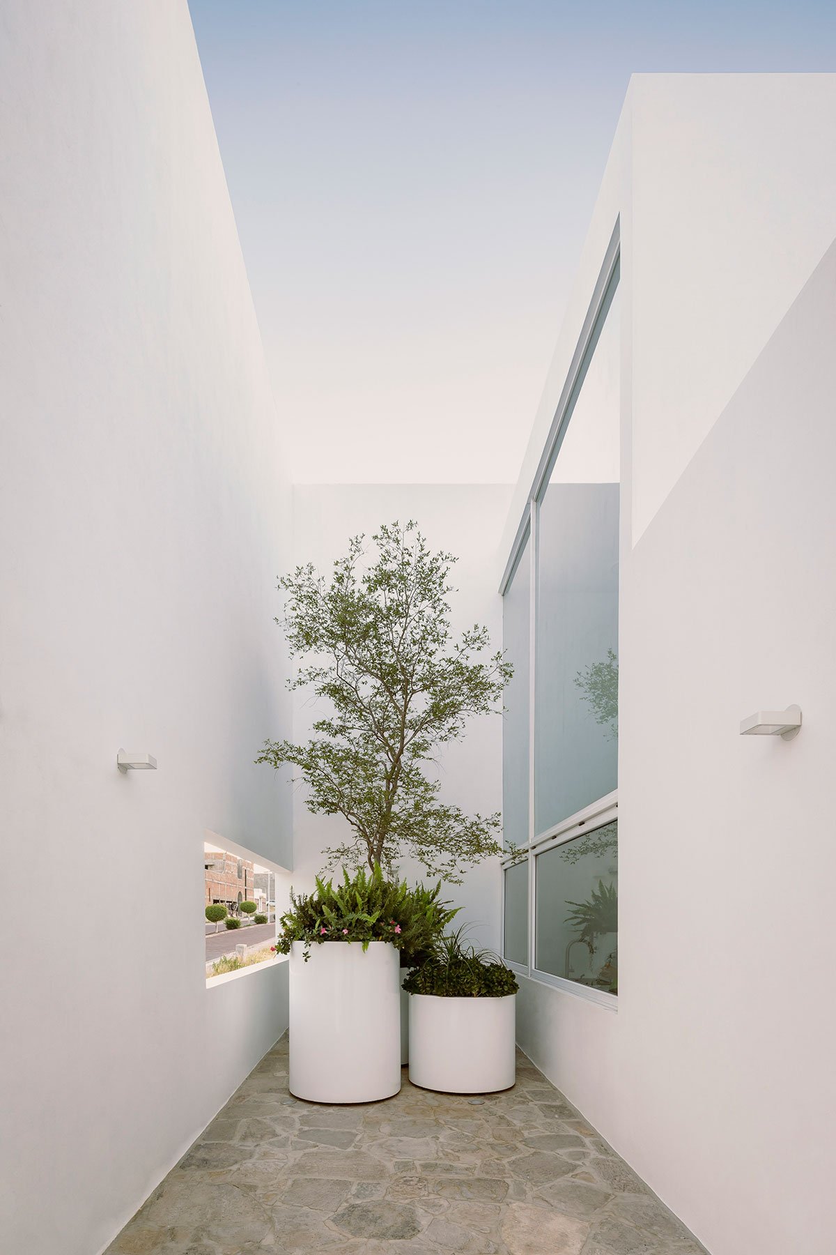 Excerpt: La Piedad is a residence designed by the architectural firm Cotaparedes Arquitectos focusing on introspective architecture. The house, stereotomic, raises its walls wrapping itself in an introspective architecture, where the relationship between the interior and the exterior exists but is not completely evident. In the central patio, a large ficus pandurata tree is planted, which grows filling the void whose crown extends and emerges in the living room-kitchen area, providing a piece of exterior nature to the interior of the house.