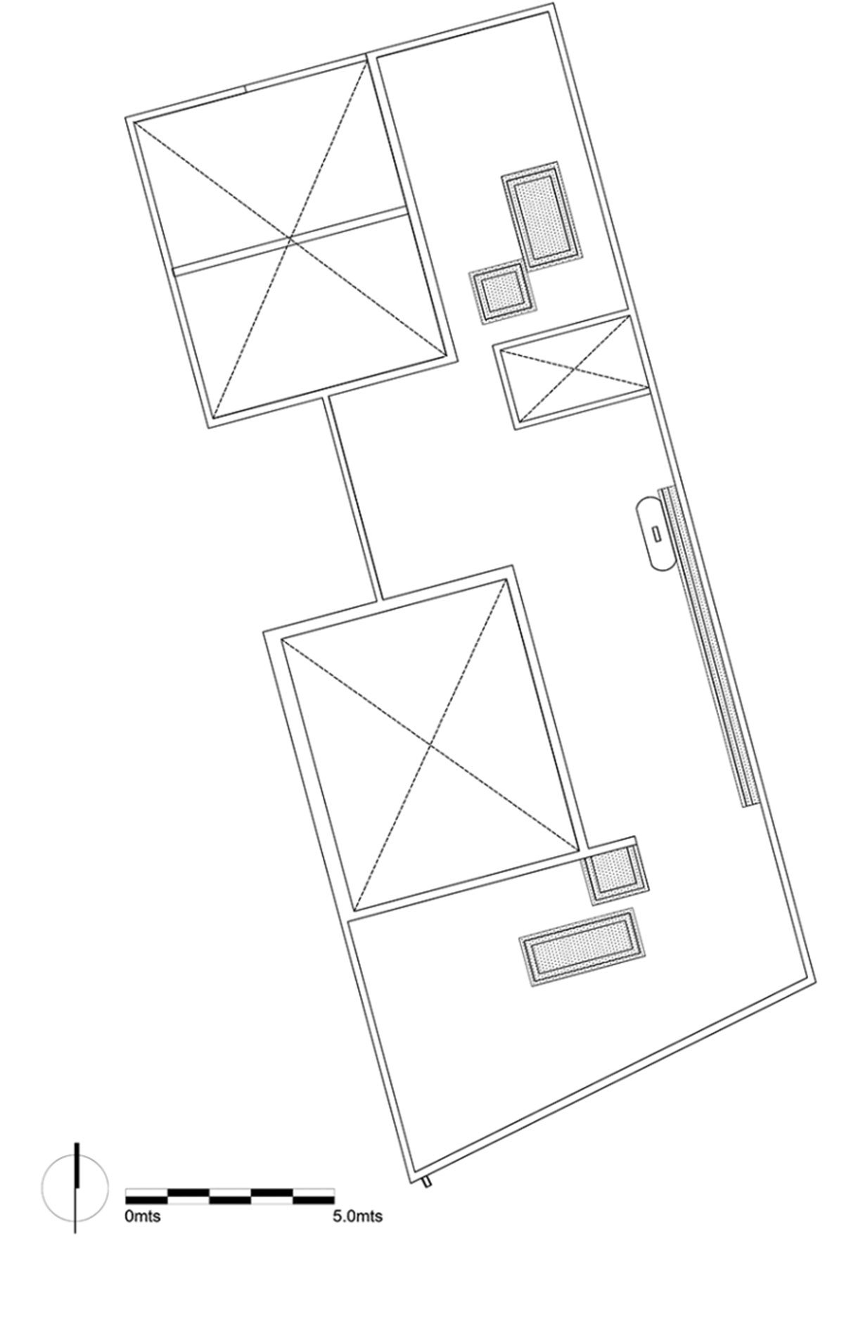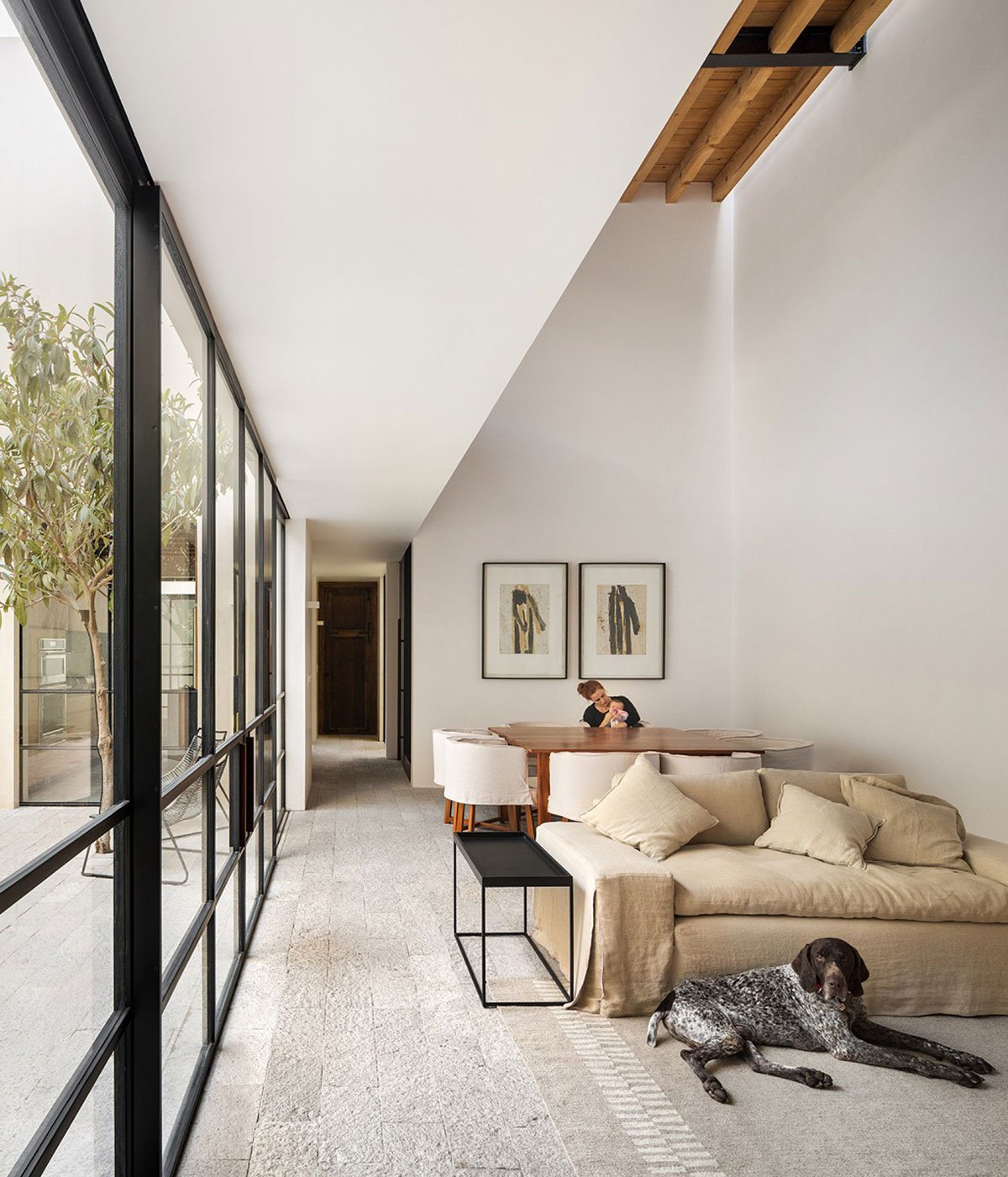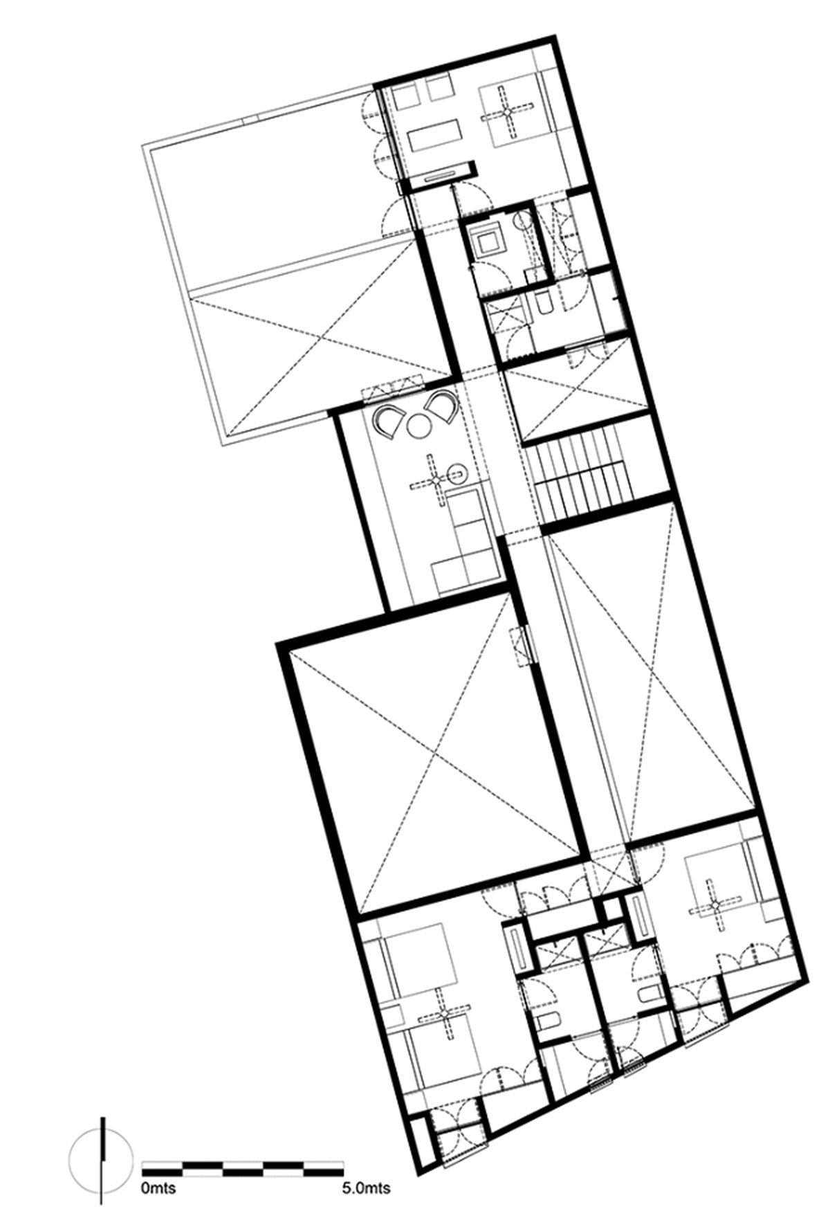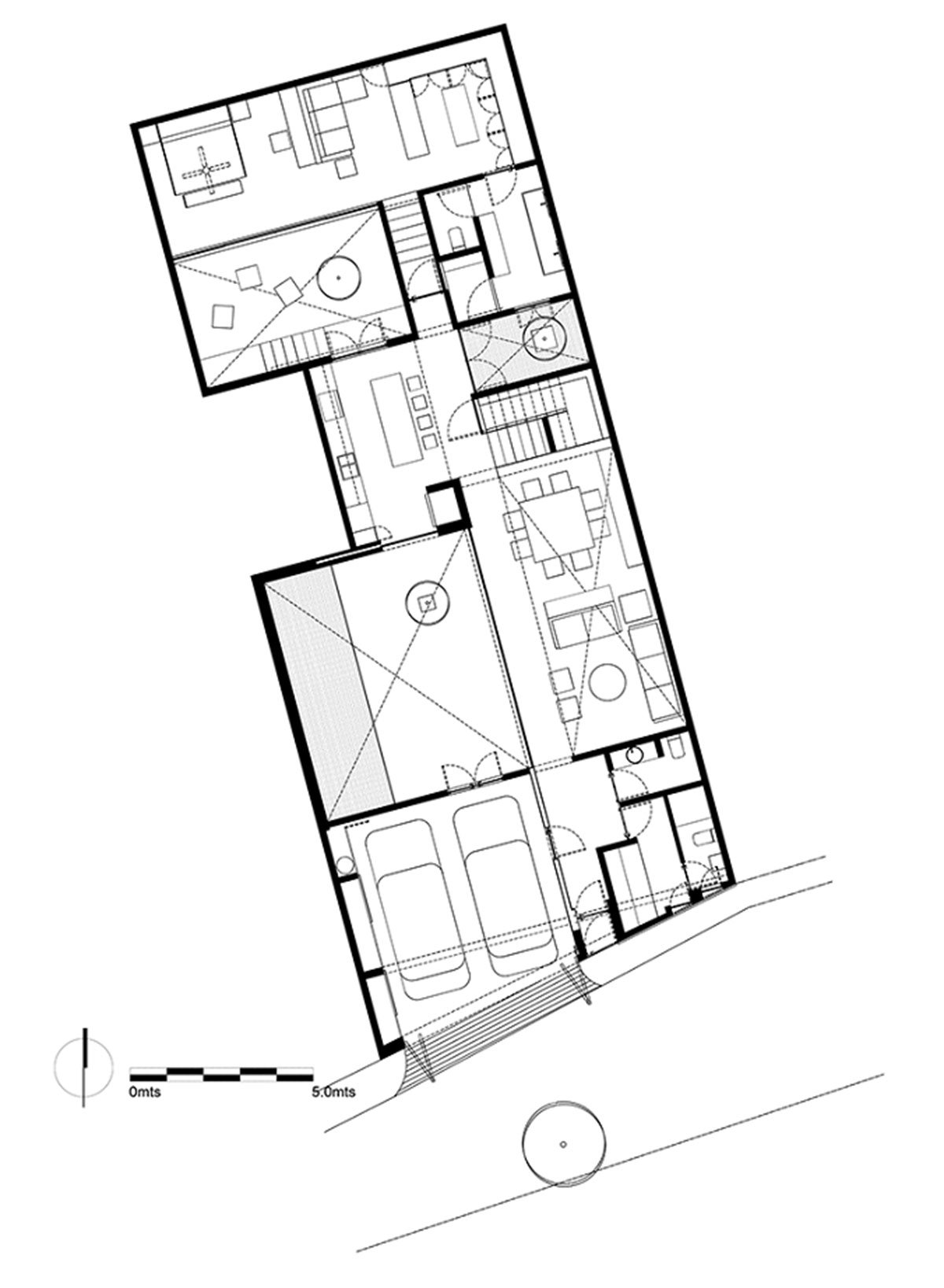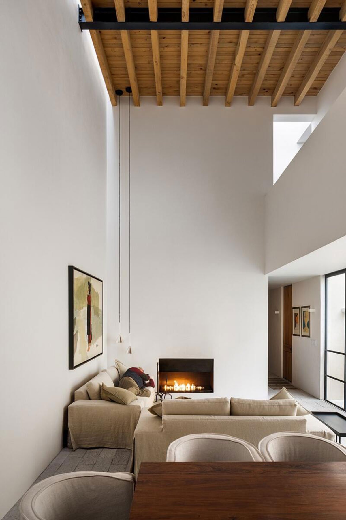 The distribution on the ground floor plan came from this concept, where there are no divisions or boundaries within the social space and the outdoor area. For a plan that works all the restrictions inwards and that has no views to the landscape, three voids were proposed in the form of patios; each one with a different character, use and program. These voids give the project its character, producing different perceptions of scale and light- shadow contrasts.