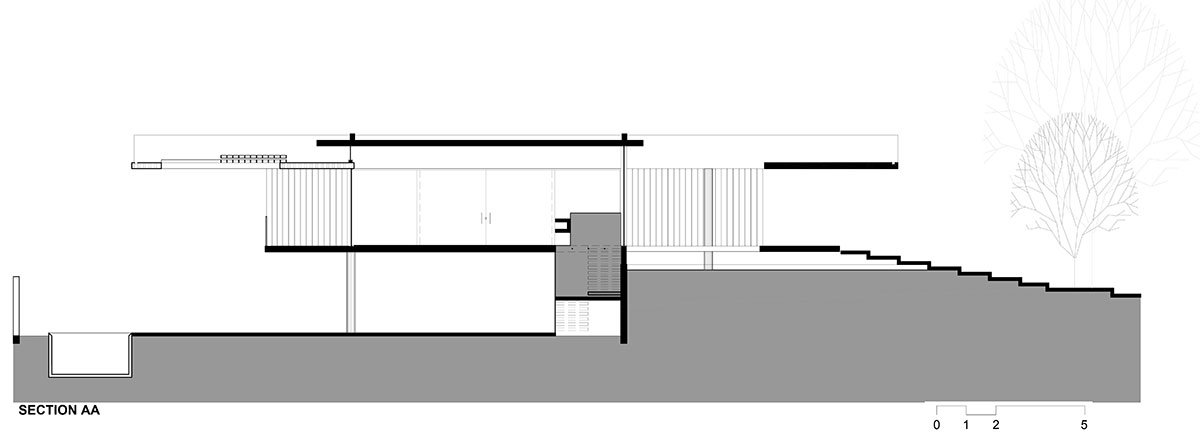 These strategies contributed to enhancing the best features of the site. They collaborated to explore the best view, maintaining thermal and environmental comfort and enabled the creation of a two level house, but with little daily use of stairs.