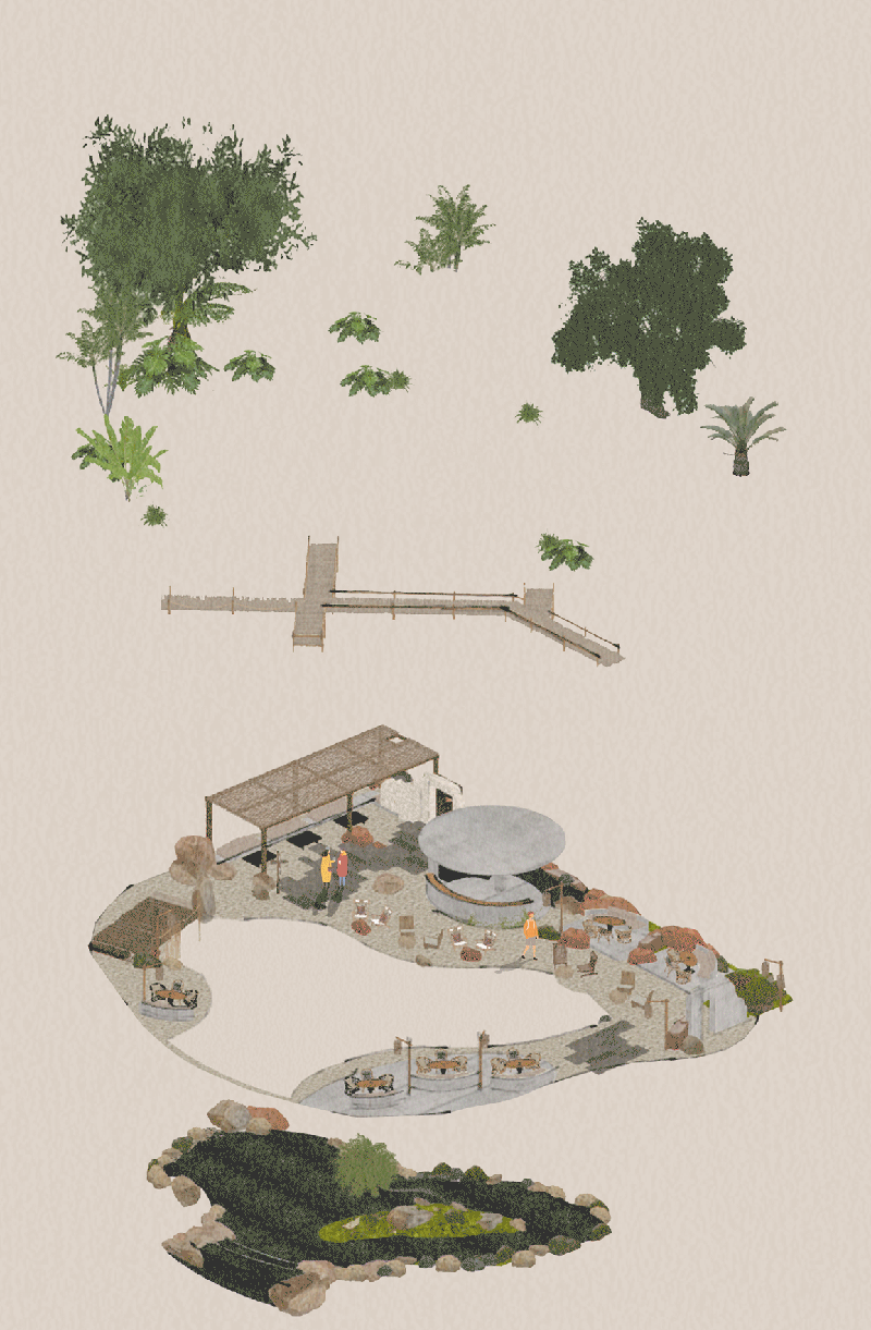 Architecture · Naturally Grown: In the design, we intentionally broke away from the traditional sense of enclosure, allowing the space to grow organically like a living plant through a semi-open structure. In response to the surrounding environment, we wrapped the garden in native bamboo nodes, using winding pathways and lush vegetation to construct a three-part spatial rhythm of shelter–transition–reveal. This 300-meter entrance journey becomes a ritual-like passage of psychological cleansing.