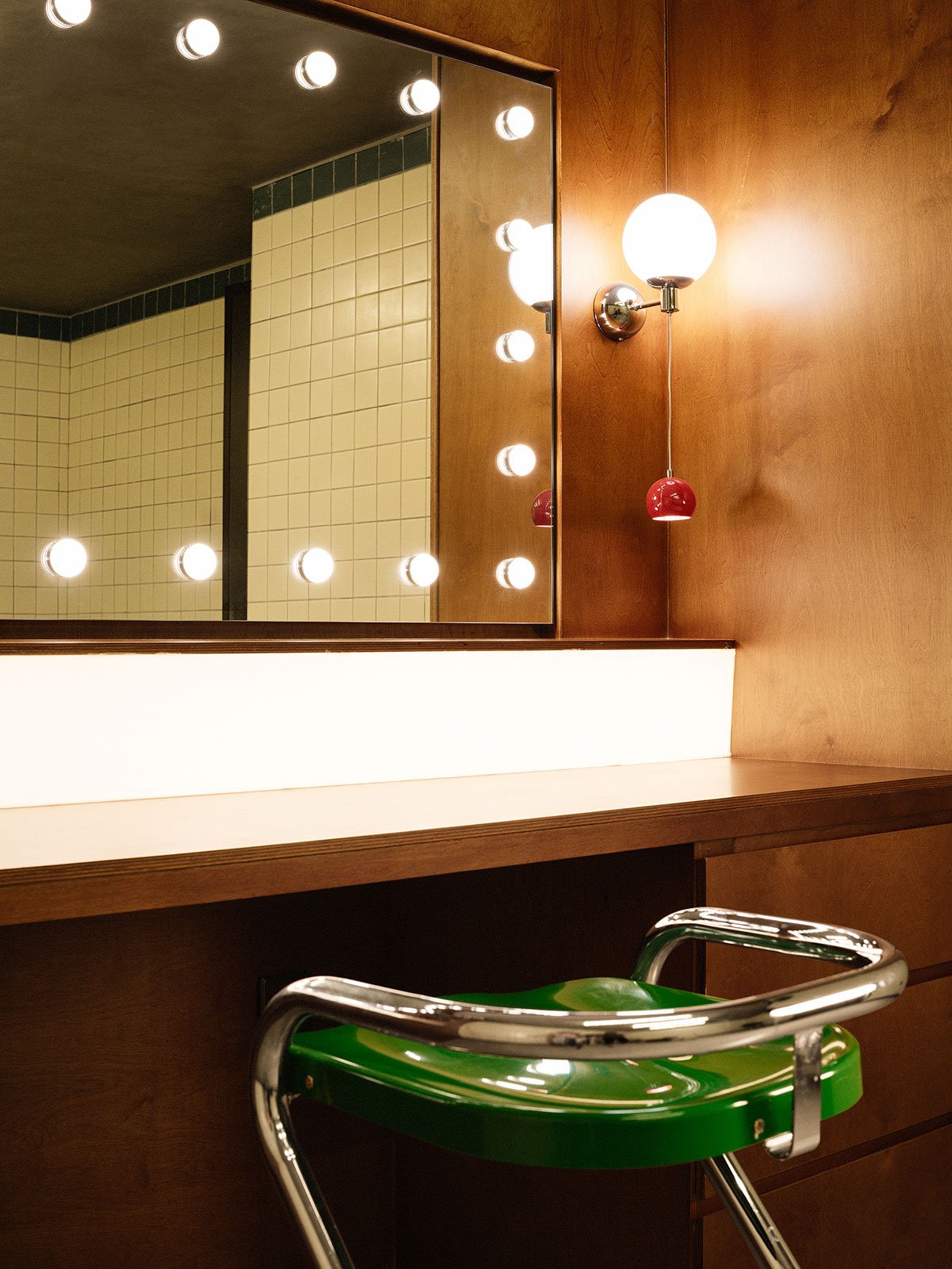 The metal staircase divides the space into leisure and working areas, providing customers with a distinct transition between scenes. The makeup room and dressing room, primarily constructed with wooden partition walls, adopt a layout reminiscent of Japanese-style rooms, enclosing each area into individual compartments. While meeting the essential requirement for privacy, the space also embodies a pursuit of simplicity and comfort in its aesthetic.
