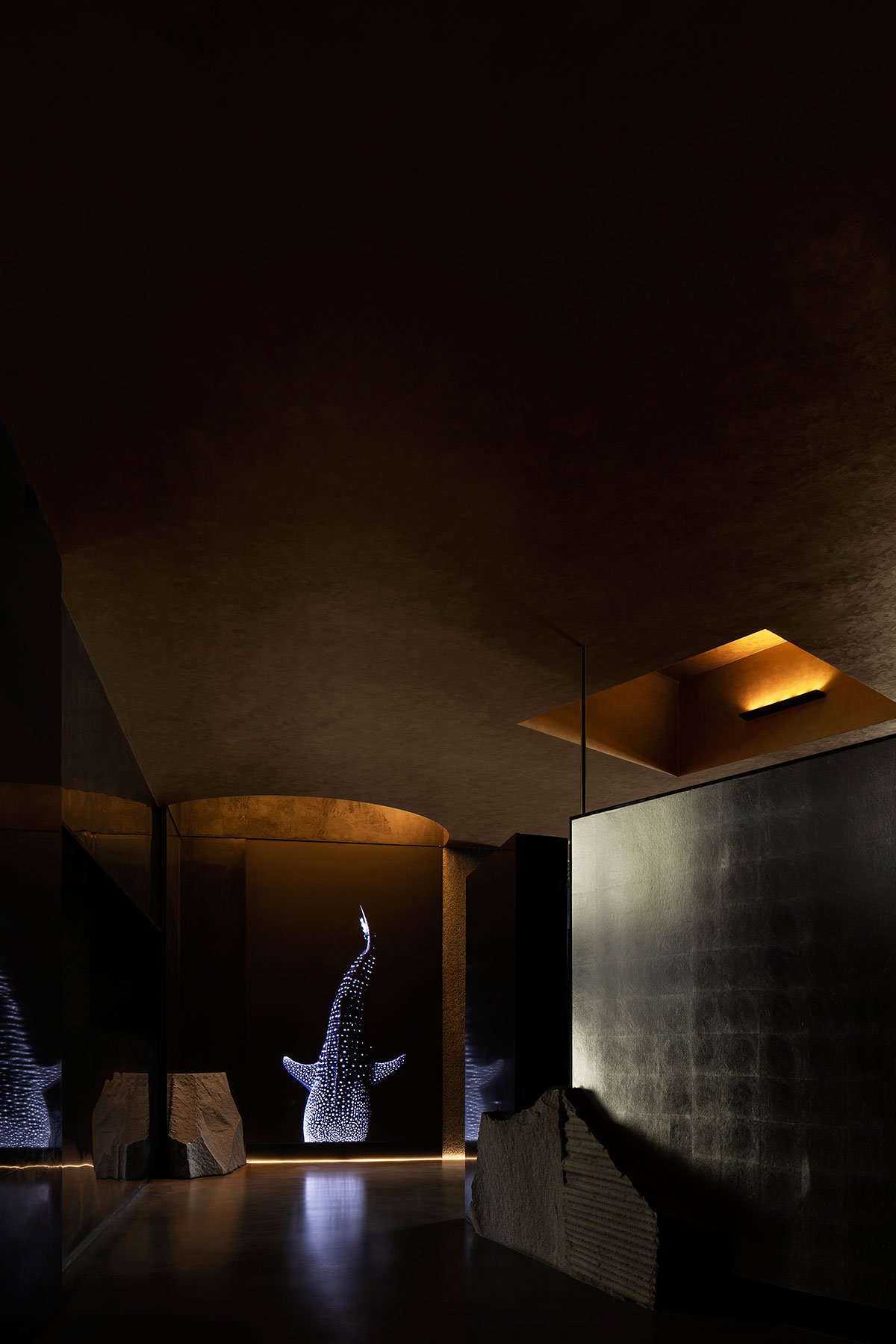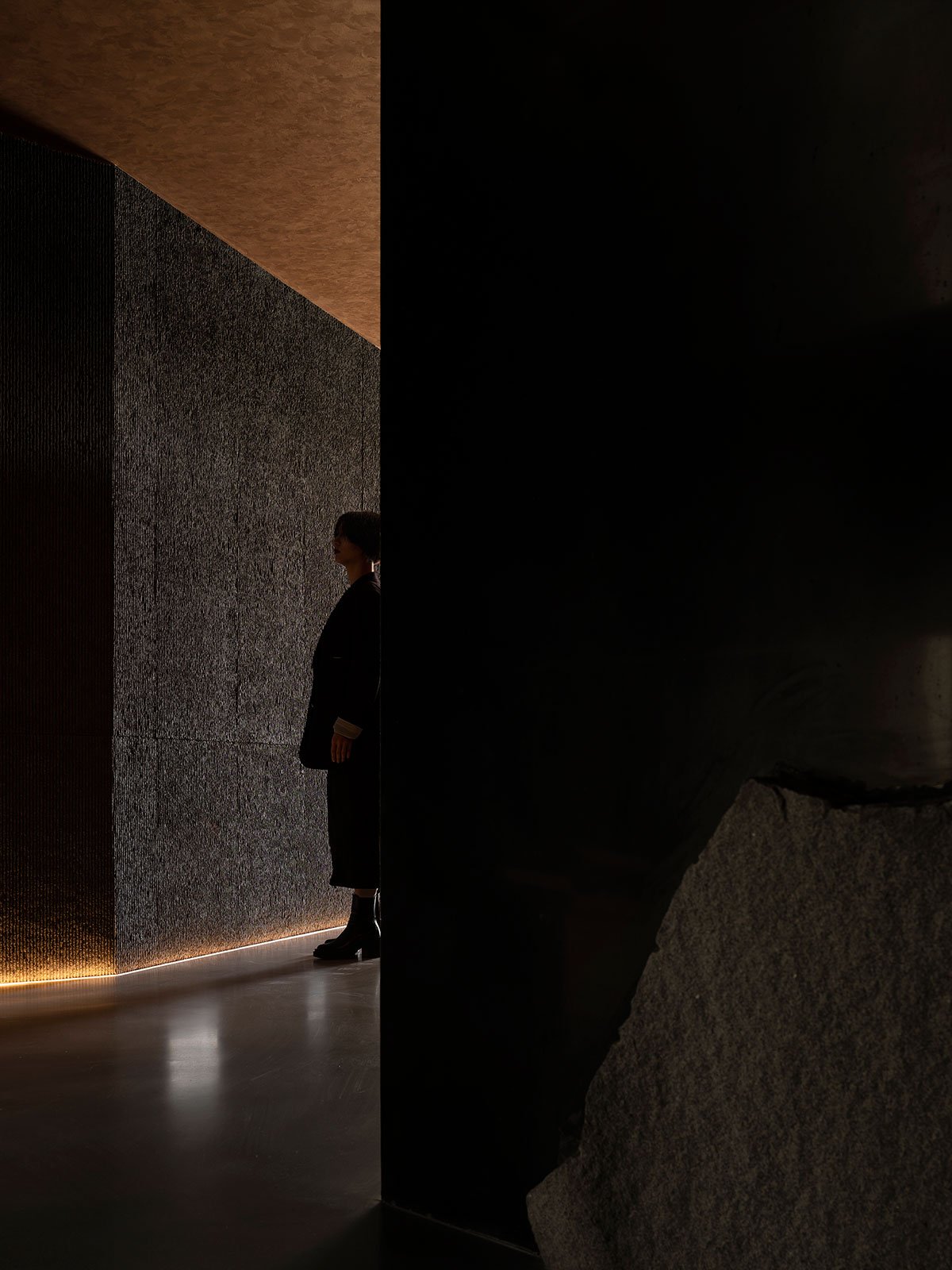 The visual experience varies at every step. As further moving inside, diners will encounter another stone landscape inspired by traditional Chinese gardens, where mountain rocks were often used to show respect for nature and create a visual barrier. Natural stone textures, abundant details and the appropriate spatial rhythm form an orderly and rich space.