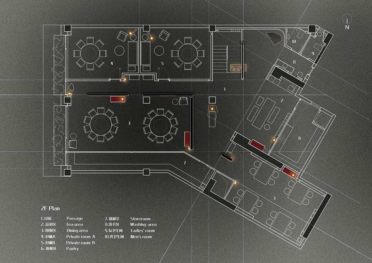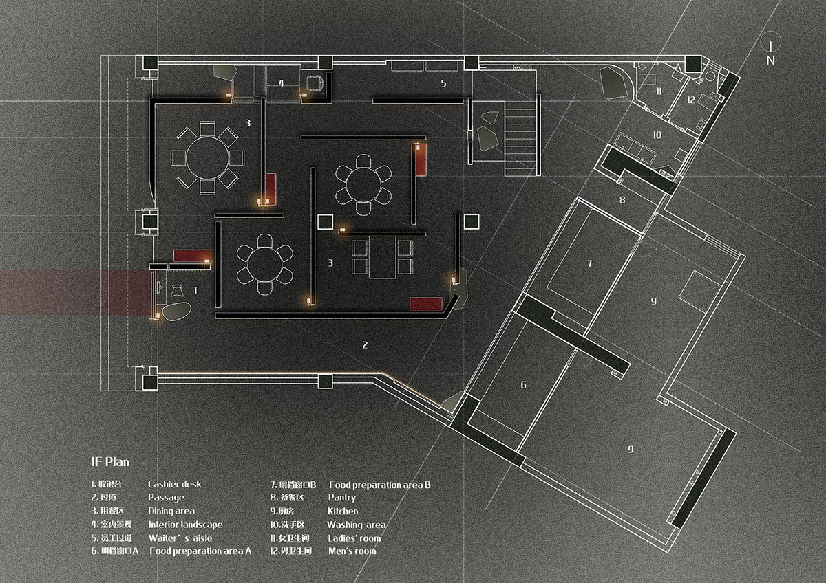 Excerpt: Late Night Kitchen, designed by JG PHOENIX, is a restaurant with nostalgic sentiments with traditional Chinese culture materials, colors and elements. Natural stone textures, abundant details and the appropriate spatial rhythm form an orderly and rich space. The overall space is highlighted by screen partitions clad in gold and silver foil, which give the space a traditional luxury aesthetic as well as a simplistic yet exquisite touch.