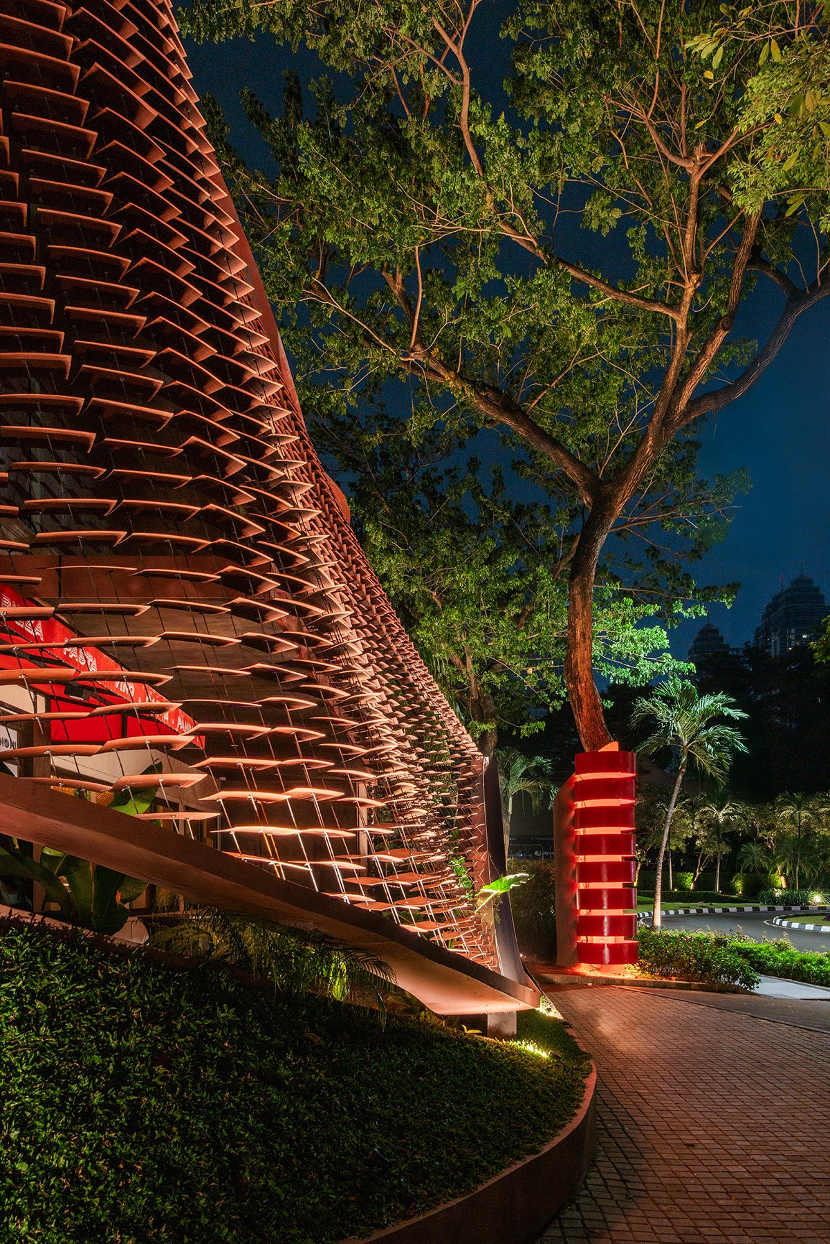 [Text as submitted by architect] The latticework principle, having been essential in the hot, humid tropical climate of Indonesia for hundreds of years, is a key identity component for essential climate control and a brilliant example of bioclimatic design.