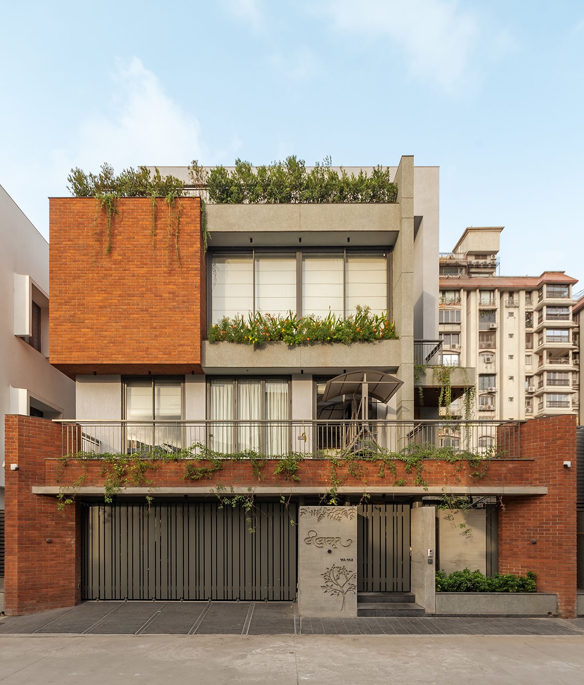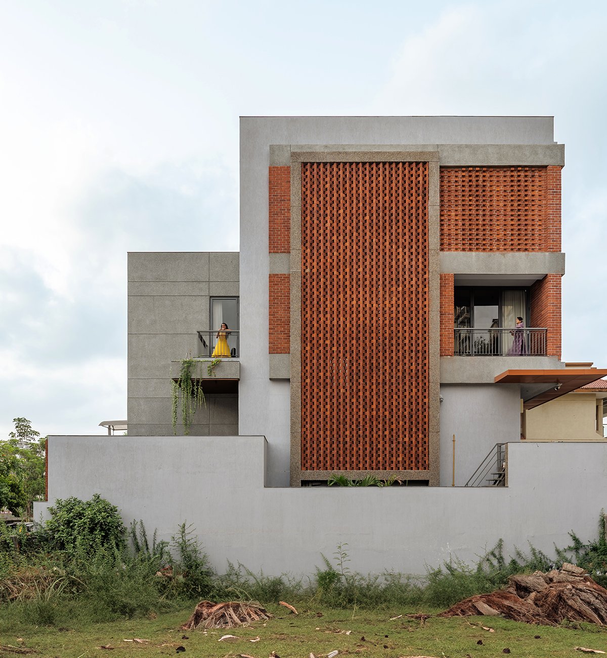 Excerpt: Leelamrut by Design Team Architects is envisioned as a residence that balances traditional yet modern functioning with a touch of sustainability. The design plays with exposed brickwork masses and exposed RCC, punctured by openings and balconies for porosity. Almost full-heighted windows with wooden frames, terracotta jali in a herringbone pattern, and an earthy material palette create a harmonious, light-filled, and intimate abode.