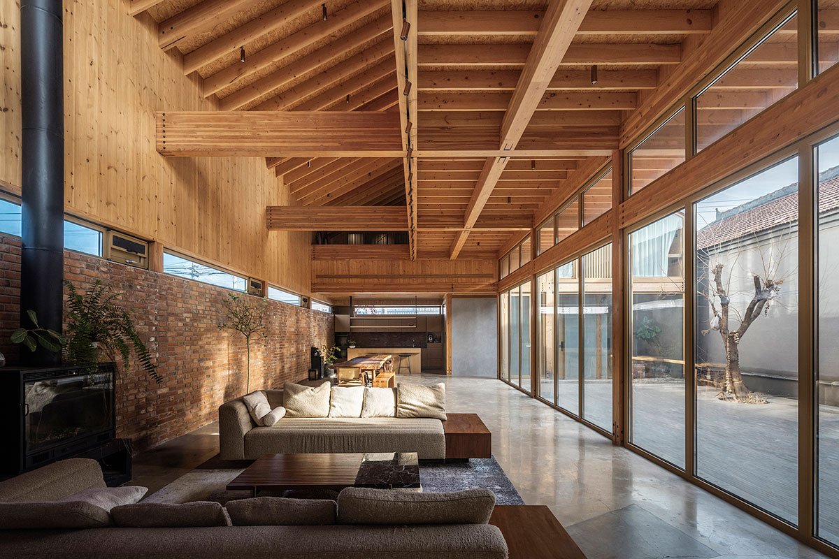 Excerpt: Lei Homestay by Archstudio reinterprets the traditional northern Chinese courtyard house through a design rooted in nature and rural memory. The timber-framed structure, centered around three preserved trees, blends indoor and outdoor spaces to create a peaceful, forest-like atmosphere. With sustainable materials and a layout that encourages community interaction, it offers a serene retreat and revitalizes village life.