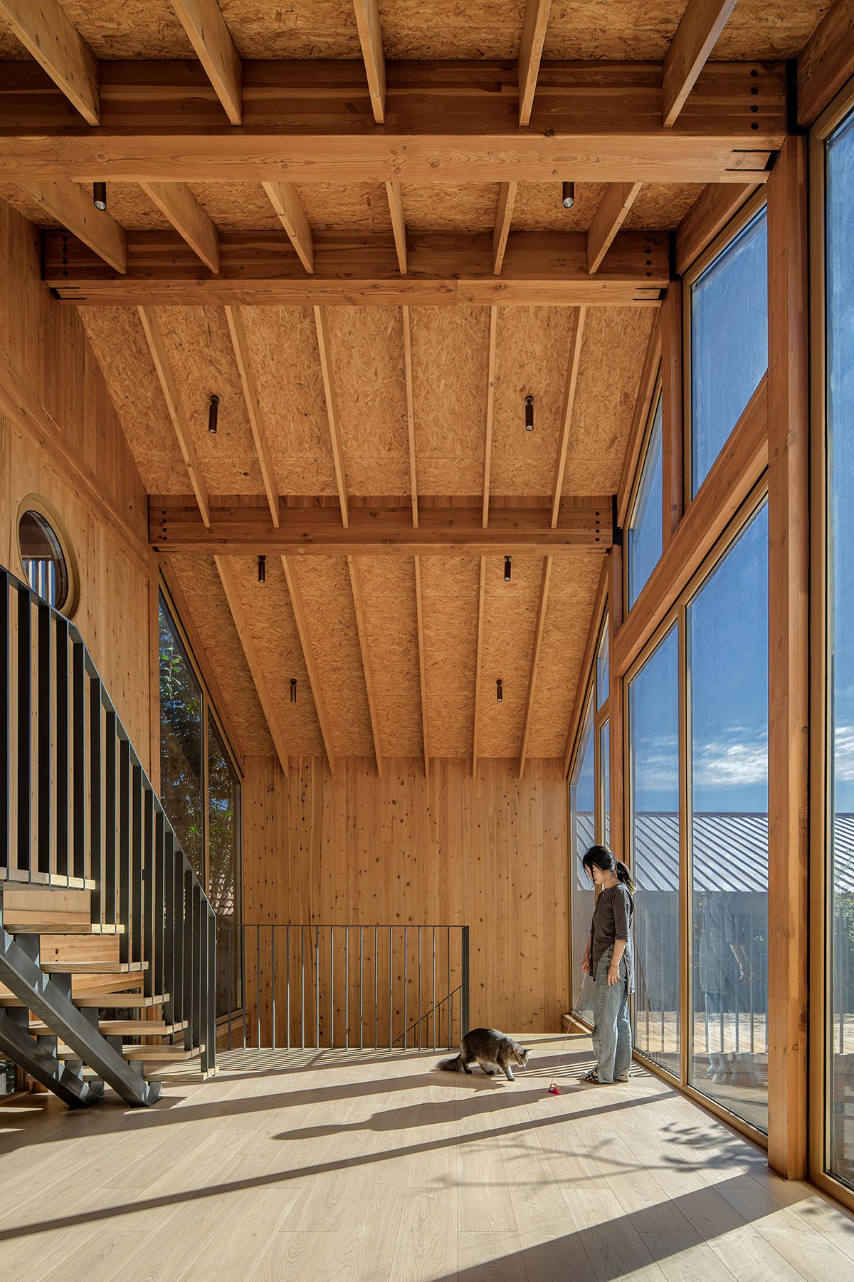 Materials and Construction: Sustainability and recyclability were fundamental principles in material selection, with cost control also being a key consideration. Timber, with its warm, natural texture and low-carbon footprint, was chosen as the primary structural material. Prefabricated timber construction ensured precision during the building process and guaranteed high-quality execution.