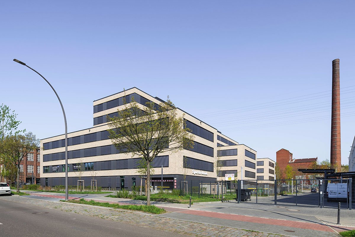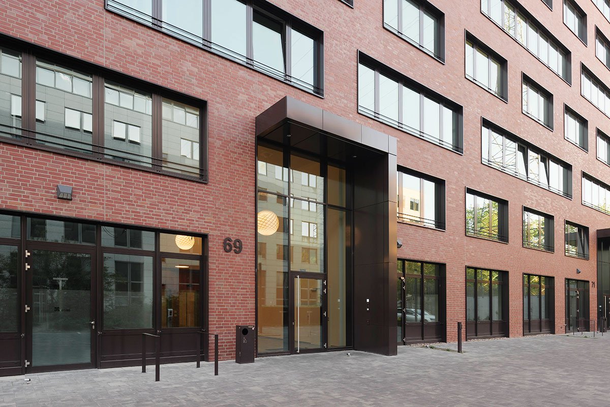 The striking façade of the “ALEX” building is made of red brick. Architecturally, it ties in with the historic neighboring buildings and is a reference to the industrial location of Lichtenberg in terms of cubature, colour and materiality.