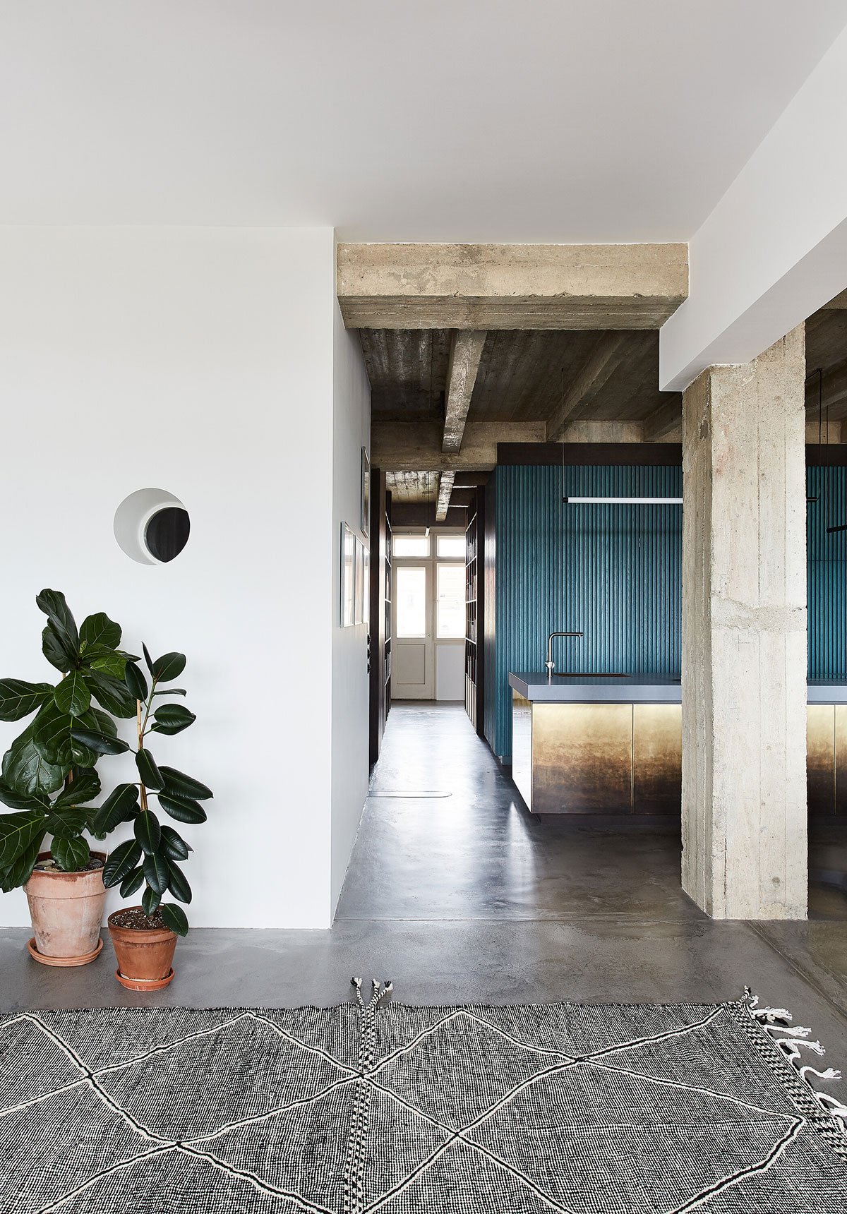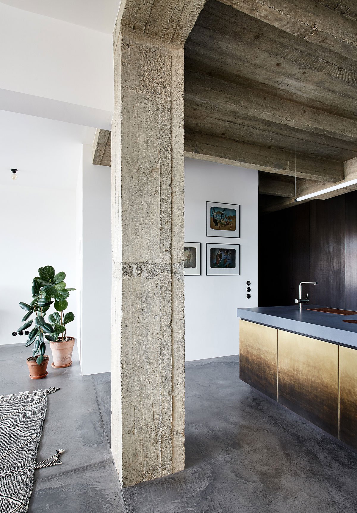 The views that were created after most of the partitions were removed are sometimes surprising, due to the interconnection of so many materials used in the apartment.