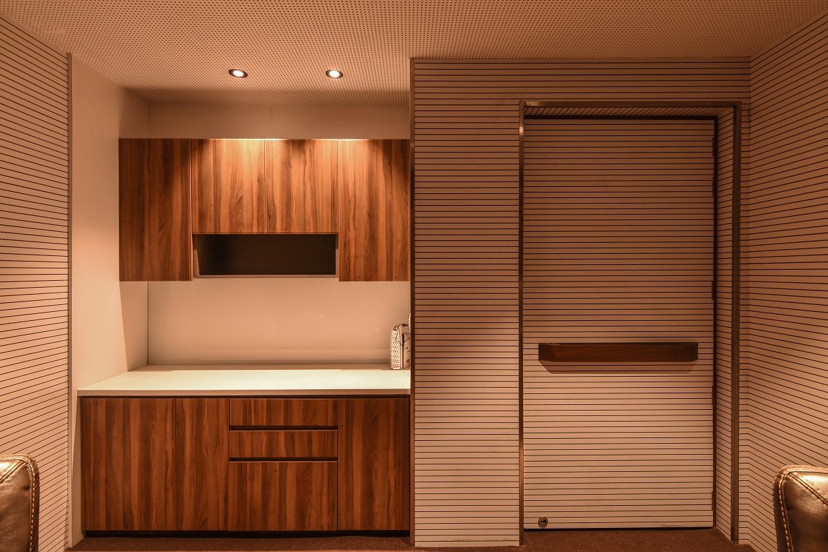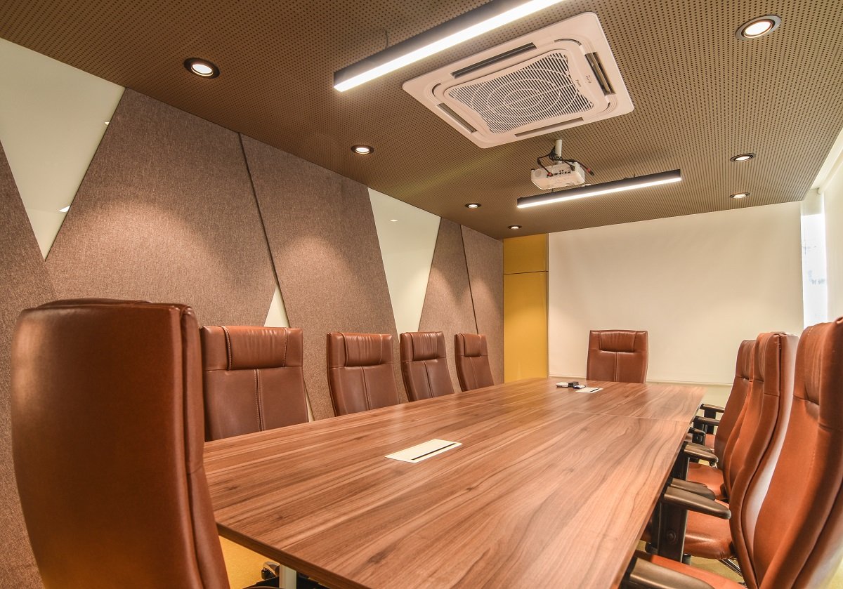 The Sangam Jali – This partition segregates the display area and the customer zone, creating an intimate sitting space for customer discussions. The patterns on the partition are inspired by the Indian greeting – Namaste and the Japanese greeting – Omotenashi.