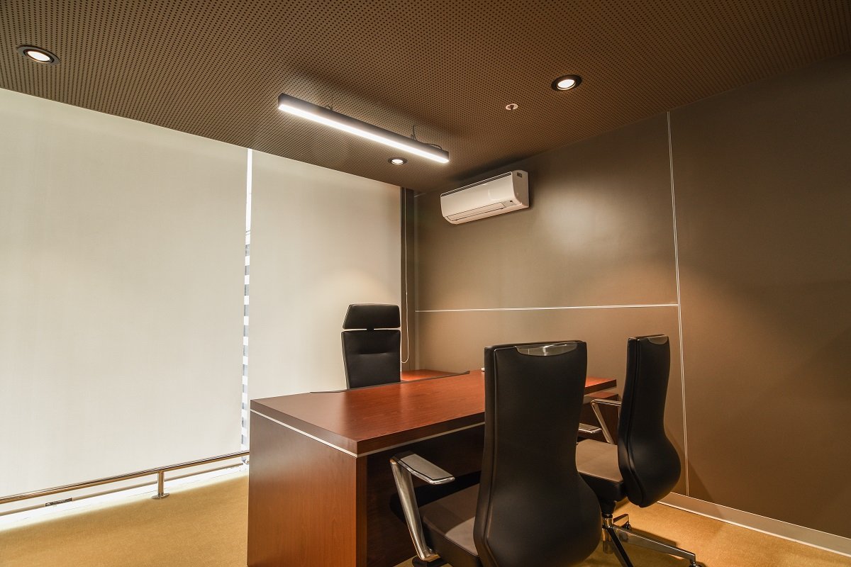 The baffle ceiling takes inspiration from the outer profile of the cars headlight.