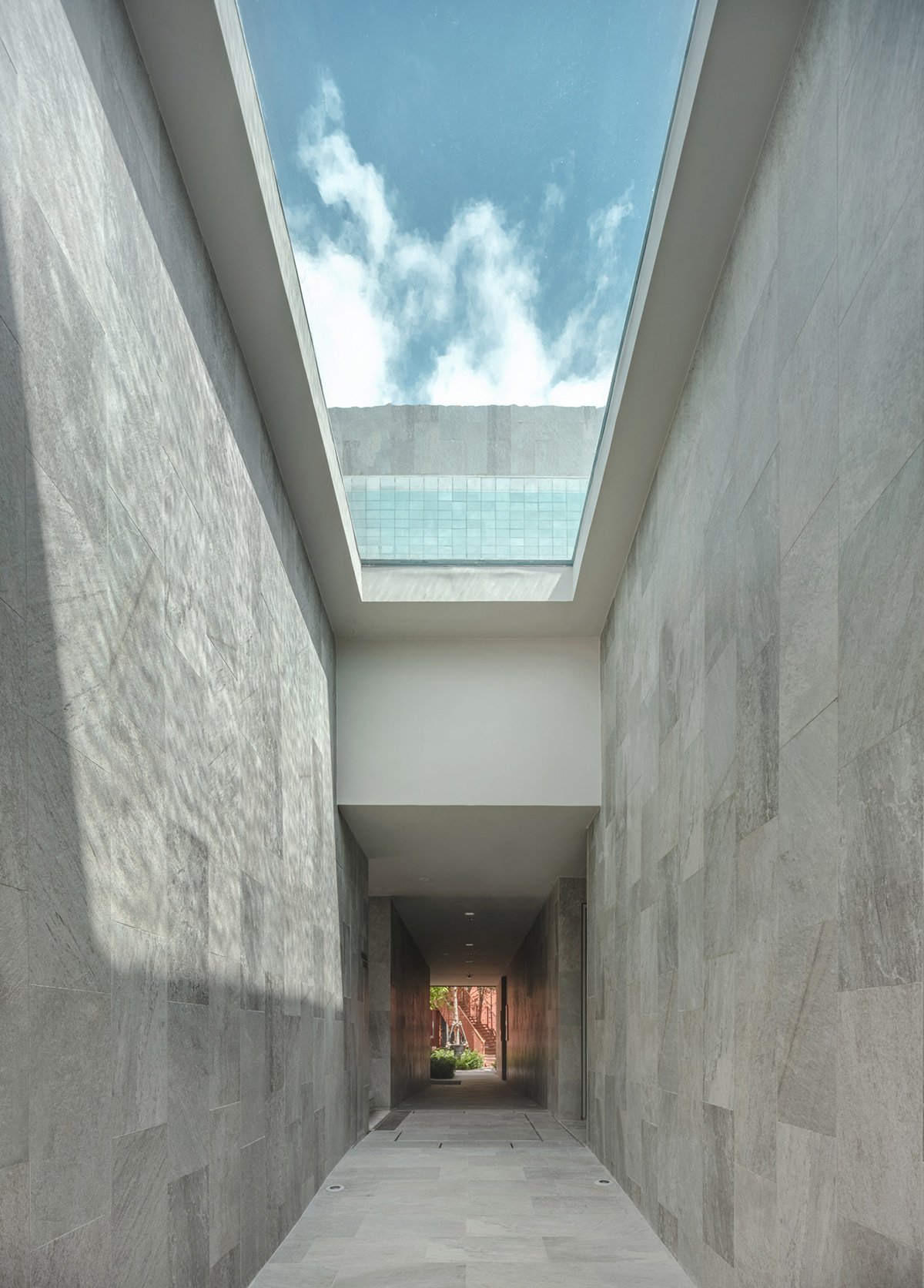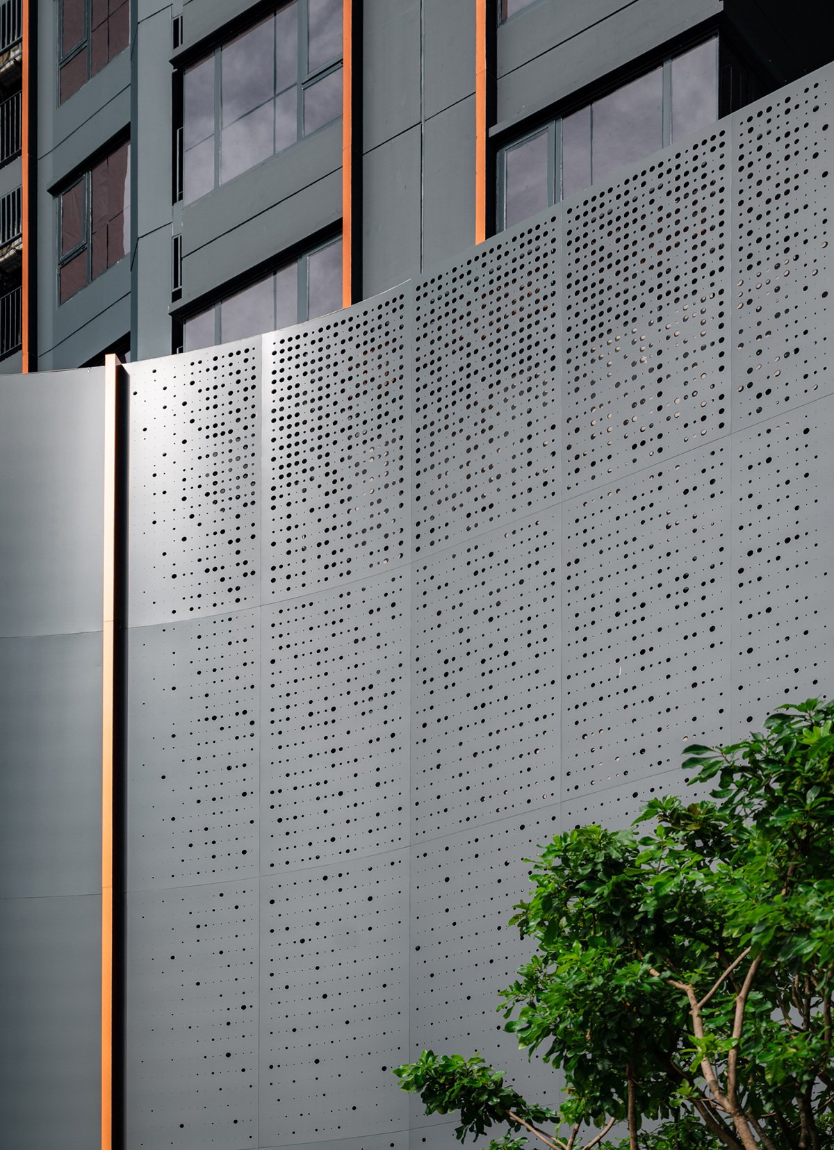 Protrusions along the façade create semi-exterior corner units, optimizing daylight access and providing enhanced privacy by reducing direct sightlines between residences. This also contributes to the dynamic articulation of the building envelope.