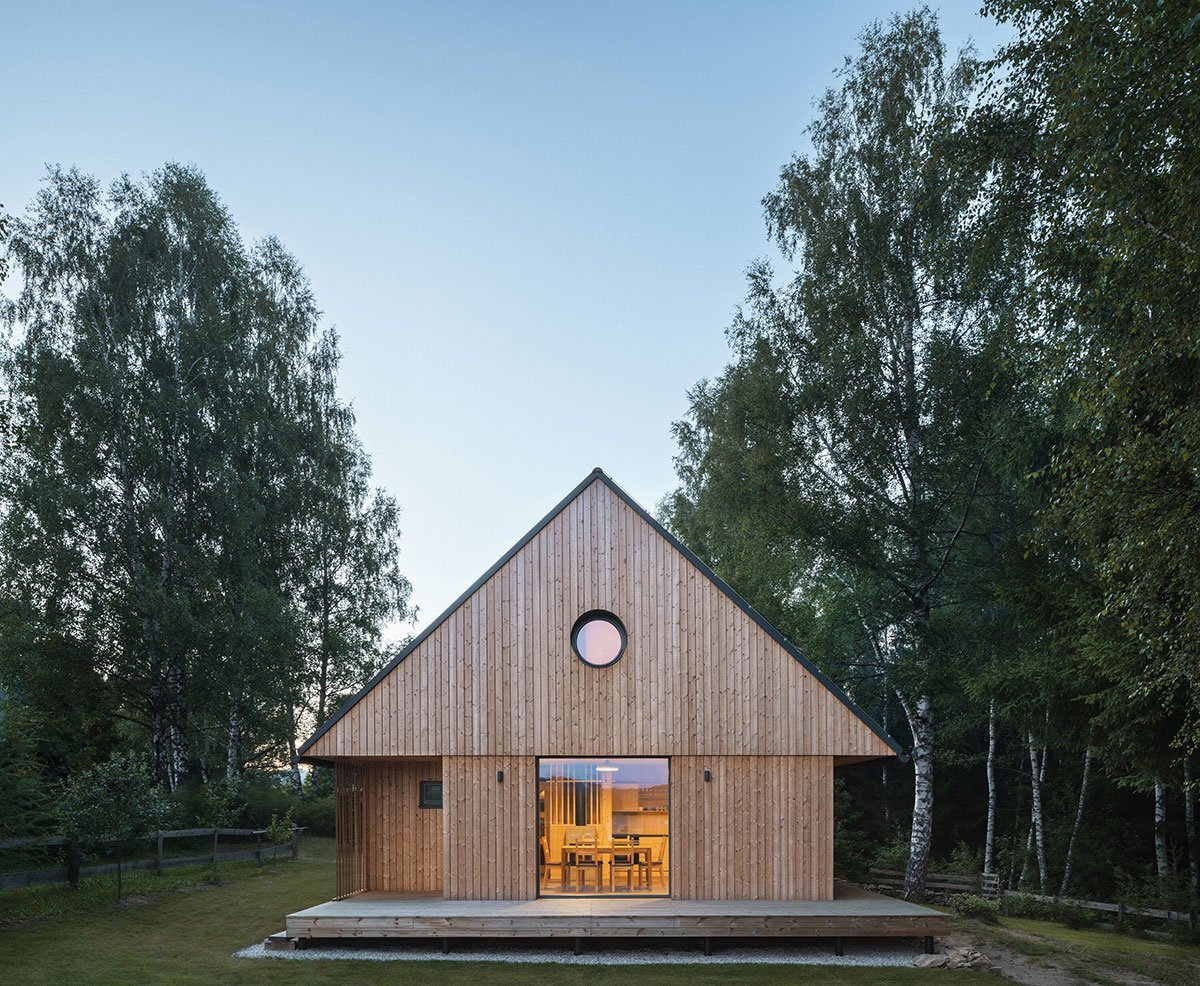 Excerpt: In Lipno Lakeside Cabin designed by Les Archinautes the morphology of the house stands on several principles of Bohemian Forest architecture: rectangular floor plan, compact shape, orientation along the contour line, creation of a covered porch, and more pronounced articulation of the gable (overhang).