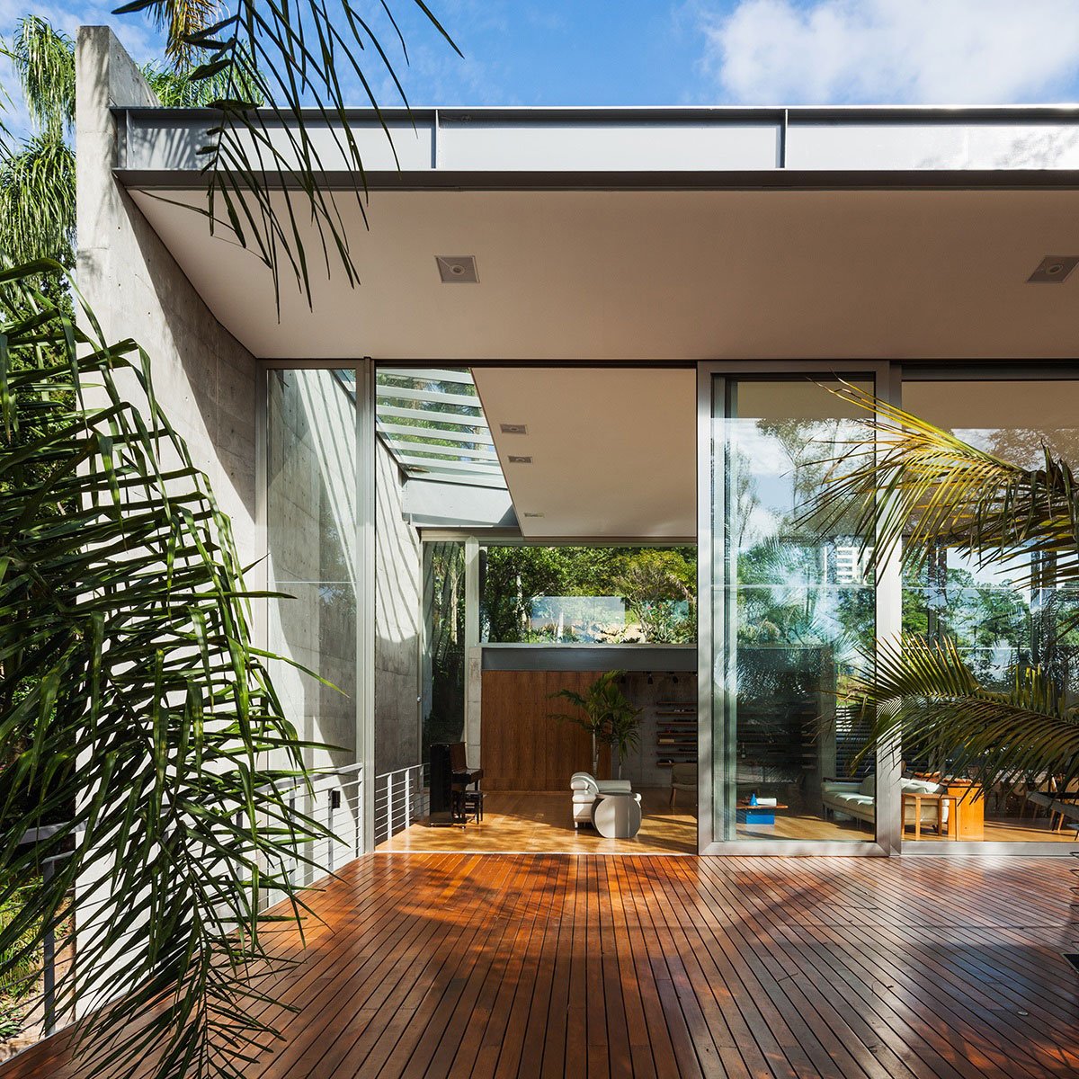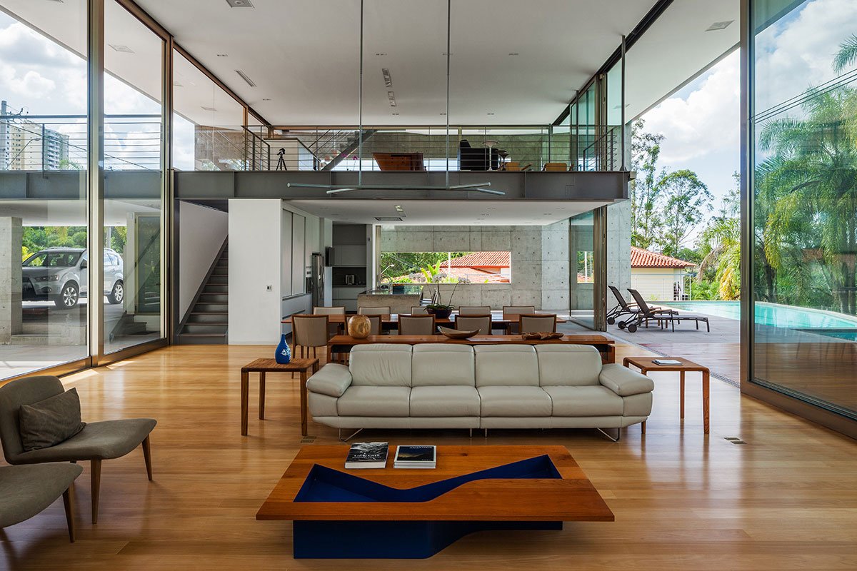 Considering the built area of 1187,60m, suggested by the customer and necessary to resolve the entire program, we tried to develop a project where people could have direct eye contact, despite being in different environments and levels of the house. This prevents the isolation and facilitate meetings of its residents with greater objectivity.