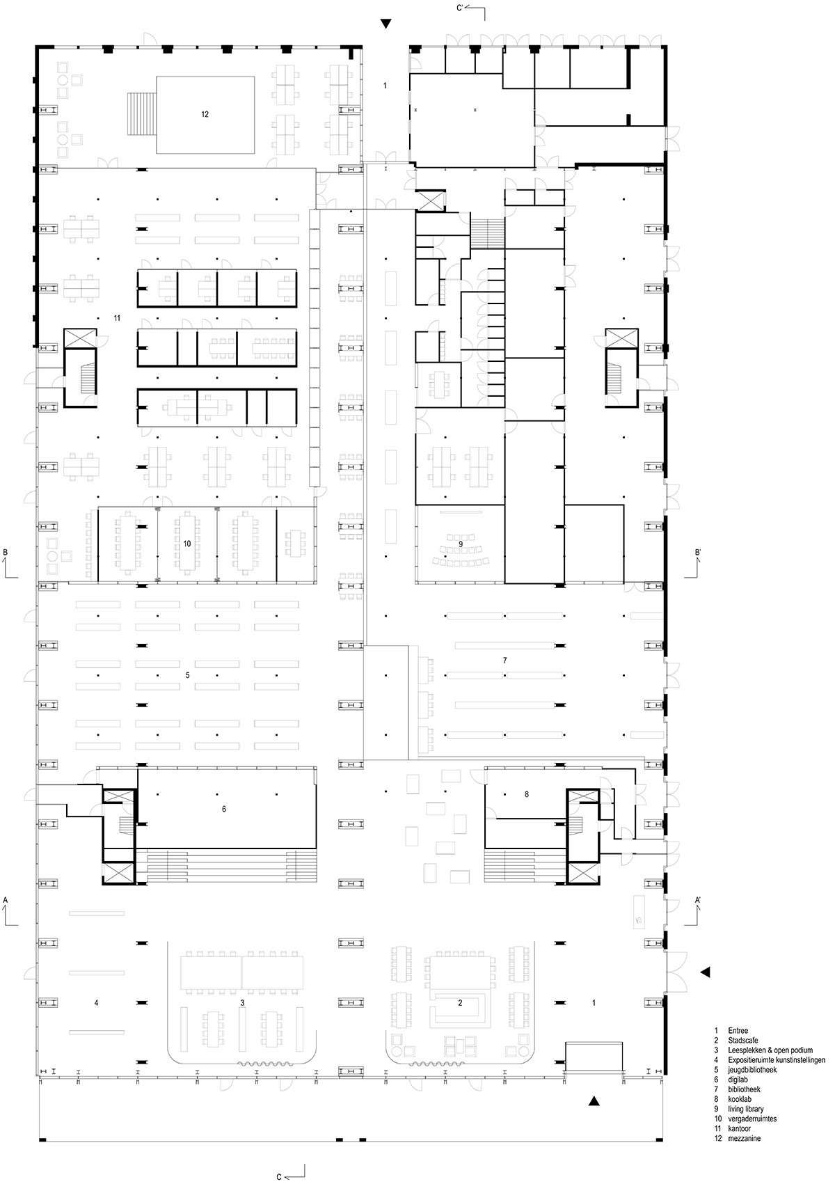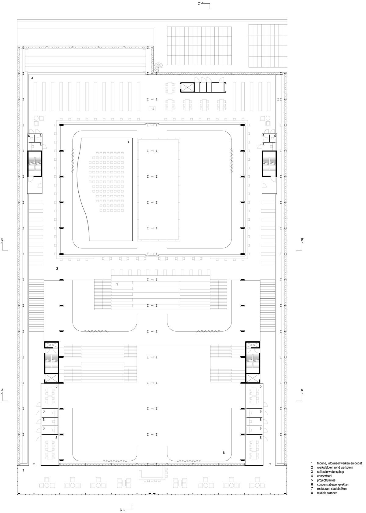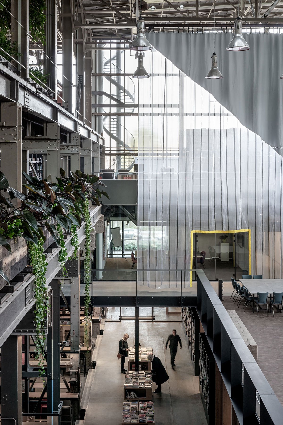 The building’s design is the result of close collaboration between Civic Architects, Braaksma & Roos Architectenbureau and Inside Outside/Petra Blaisse, while the engineering consultancy Arup advised on aspects such as sustainability, re-use and acoustic design. The furnishing of the library, of the various ‘laboratories’, the café and offices are by Mecanoo.