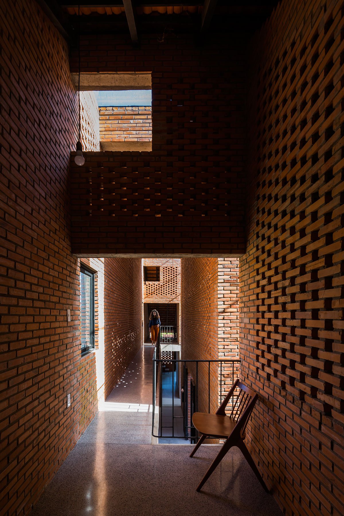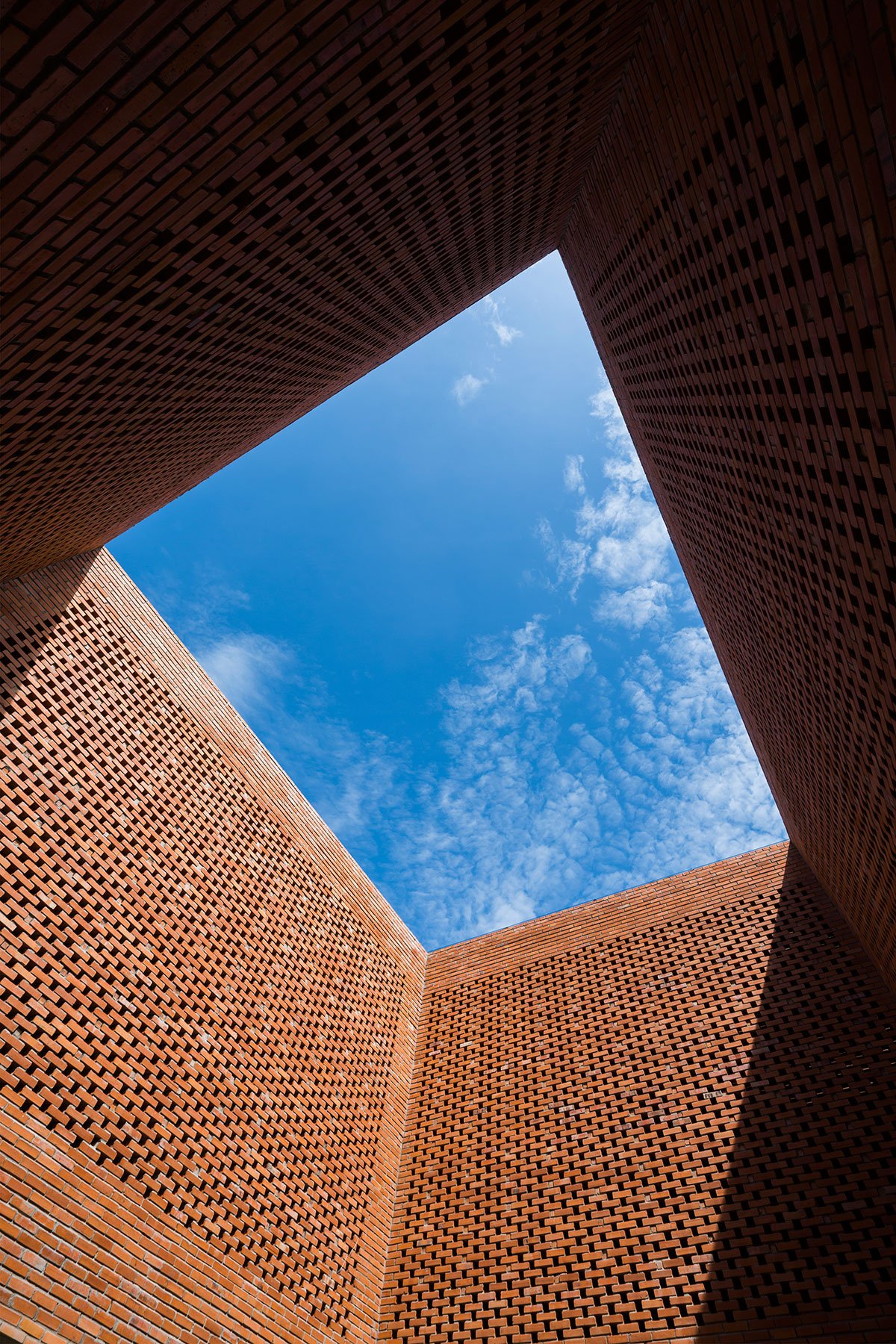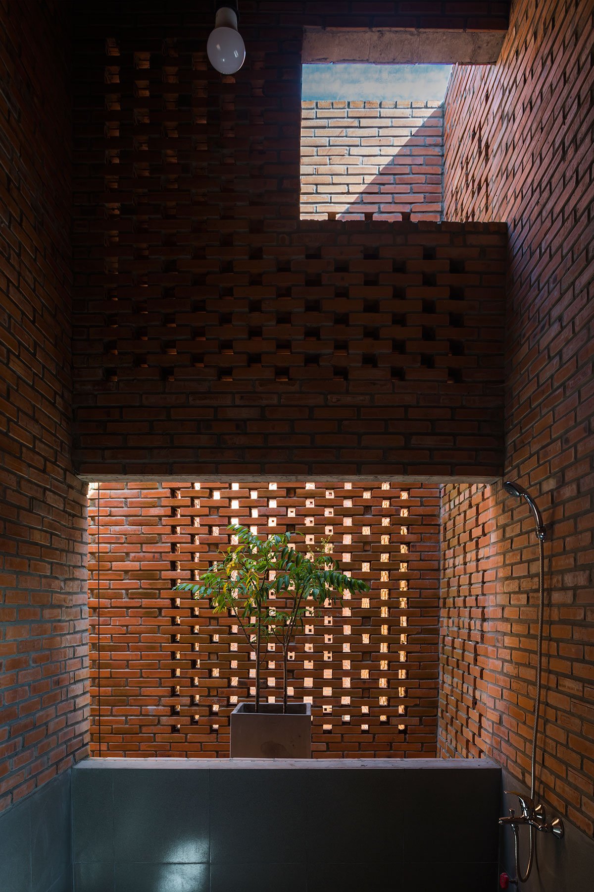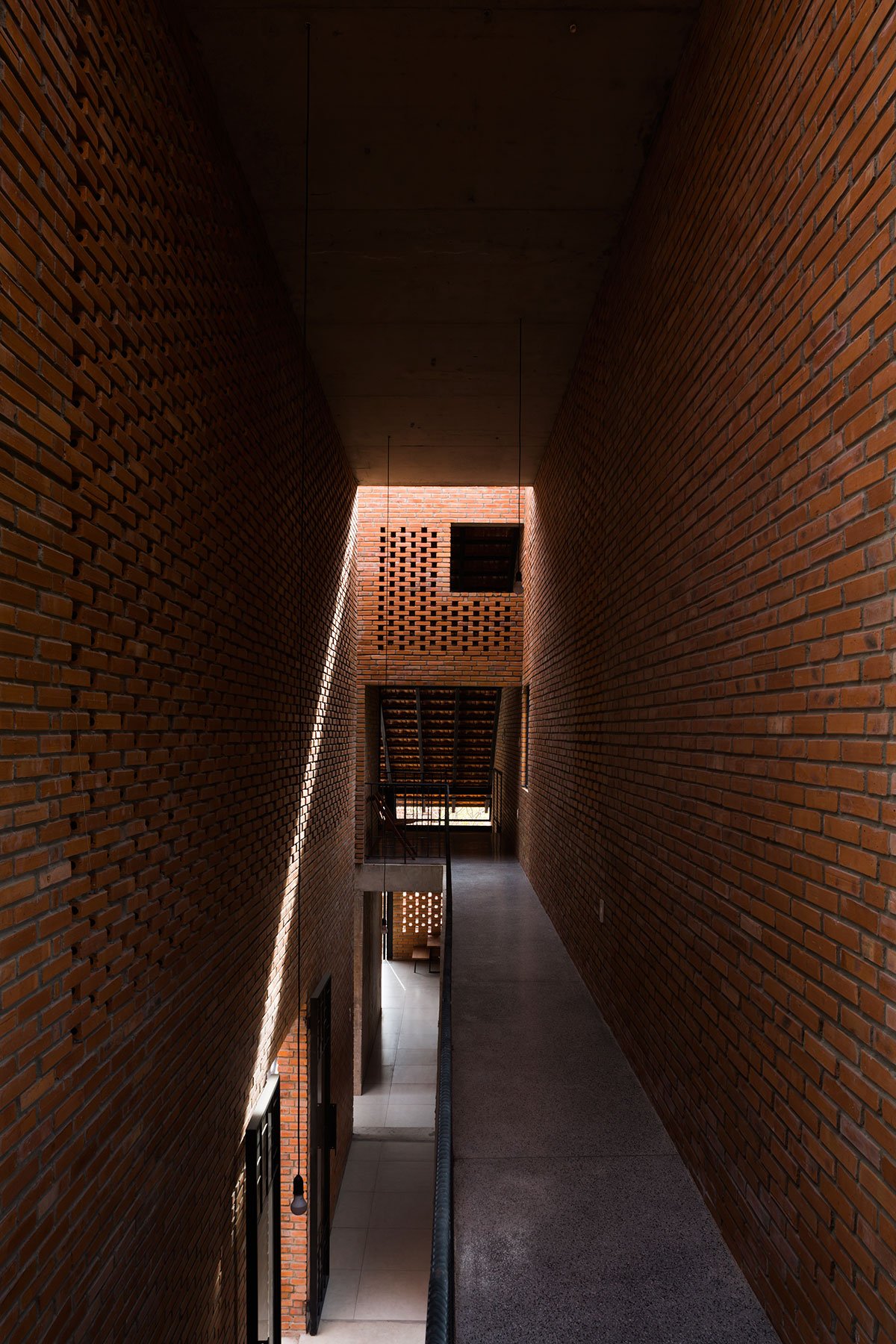 [Text as submitted by architect] The architects were inspired by the traditional house and wanted to design a house with the traditional structure accompanied by 3 separate spaces and slope roof, but using a modern and strong architectural language. At the same time, maximizing the ventilation efficiency by dividing the roof into two parts and having a courtyard; then allocating two corridors to connect the roof. This way created a courtyard and big walls. These are porous walls which can bring breeze into the house.