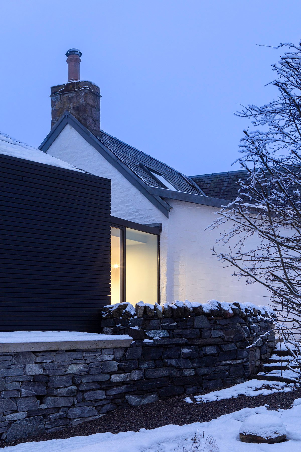 Excerpt: Lower Tullochgrue, designed by Brown & Brown Architects, is a home which could be used by numerous members of a large family, both collectively and in smaller family groups. This drove the creation of large social spaces, separate guest accommodation in the form of a small separate block, and refurbishment of the original house. Our approach was to take down the steading, reusing the materials from it, before creating a replacement stone plinth, atop which could sit the main body of the extension, allowing for consistent floor levels between the historic and contemporary elements.