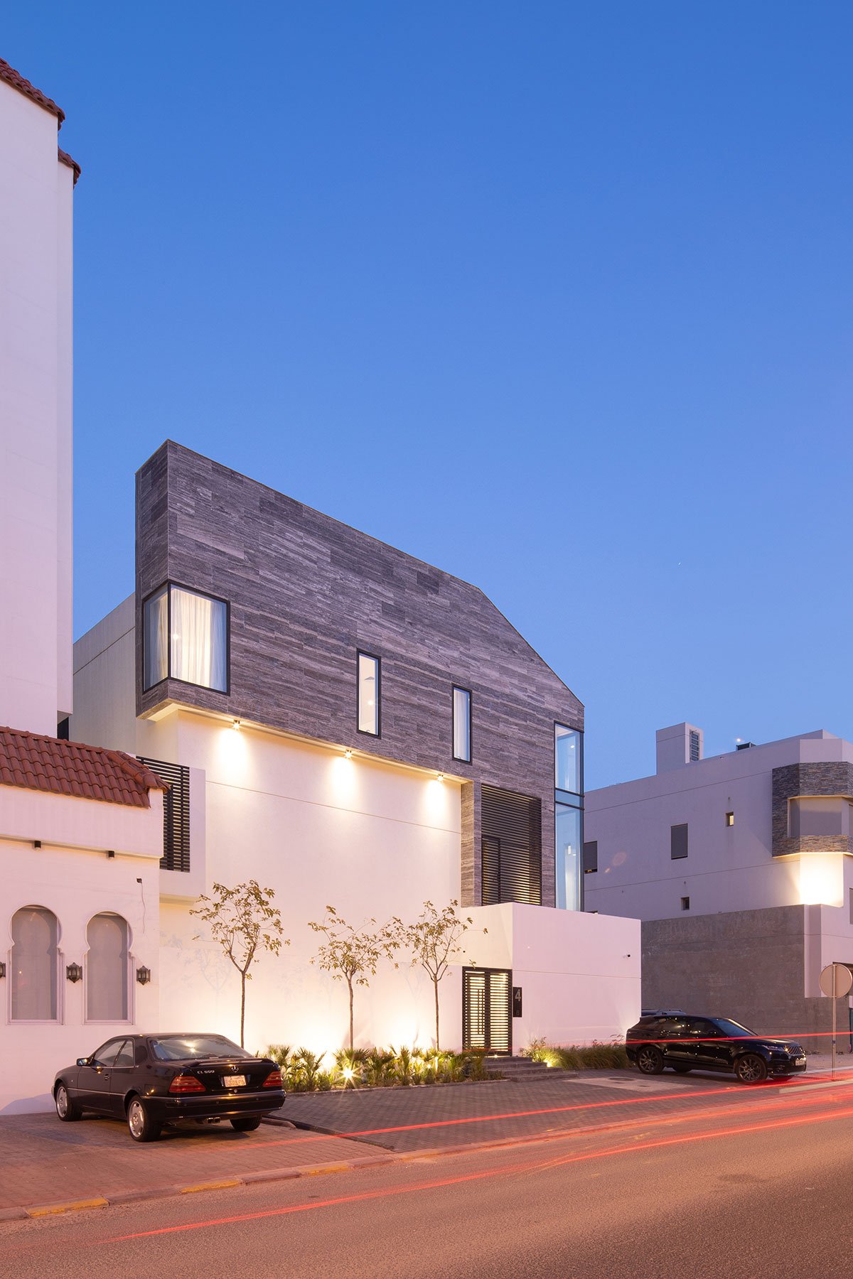 [Text as submitted by architect] Lumo-7 is a single-family residence built on a 400m2 plot in Funaitees, Kuwait that is organized around a luminous atrium and a planted courtyard. The project features a compact and efficient approach to space planning while optimizing the exterior areas to achieve a holistic living environment.